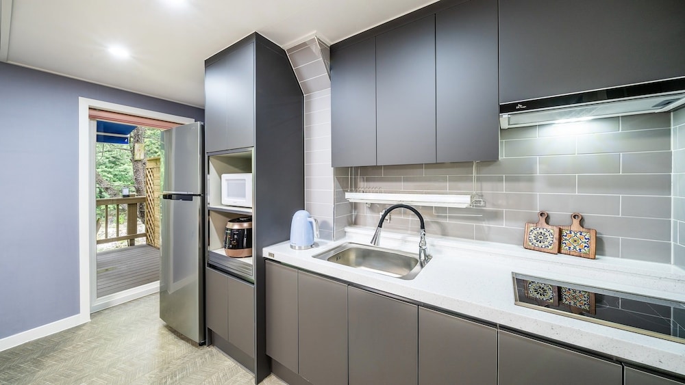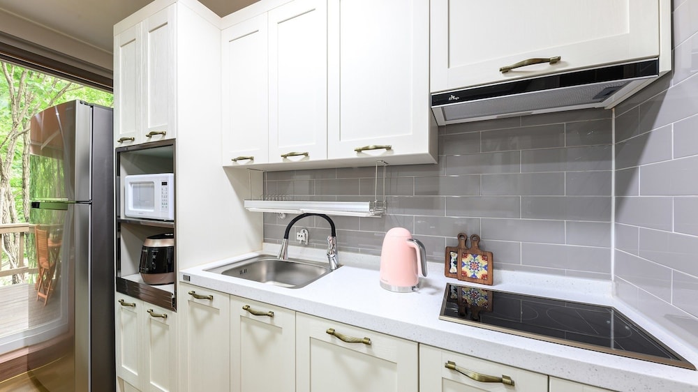잔디정원이 잘 조성되어 있고 주방 조리기구도