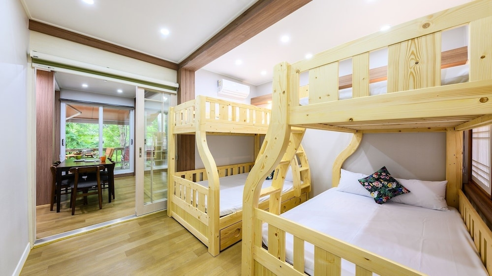 다만 2층침대가 두개 들어가는 방이라 침대 외엔 공간이 없어요. 하지만 모두 함께자는 느낌이라 저희는 좋았어요.