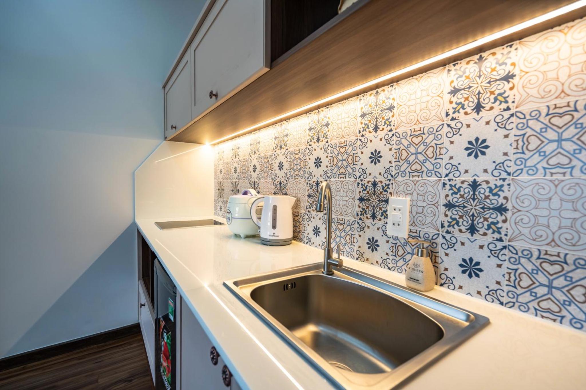 Phòng đầy đủ tiện nghi từ bếp, máy giặt, bàn ủi, máy sấy. Vị trí cũng thuận tiện, gần HXH và quảng trường