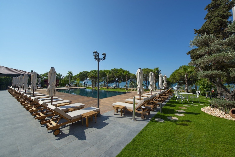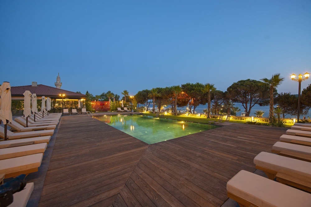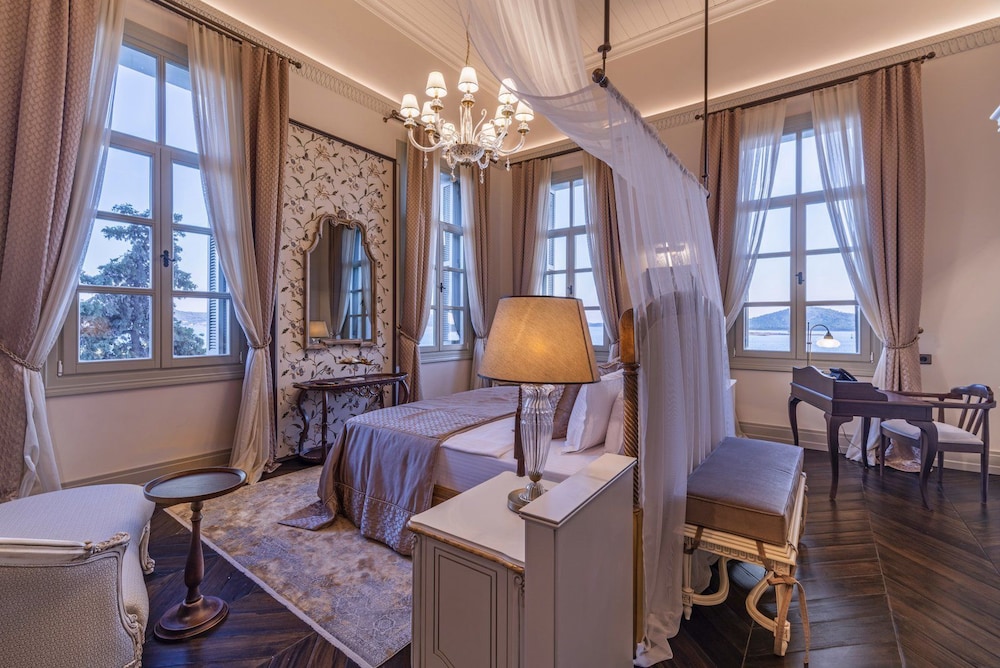 Otel çok şık fakat odalar çok küçük. Üstelik ana binada bir oda seçmeme rağmen. Deniz manzarası için ilave ücret ödemeyin çünkü 10000 liralık odalardan seçmediyseniz denize yandan ağaçların arasından bakabilirsiniz ancak. Restoran çok iyi, şef mükemmel. Konum harika, iç taraftaki meyhanelerin gürültüsünden uzak.