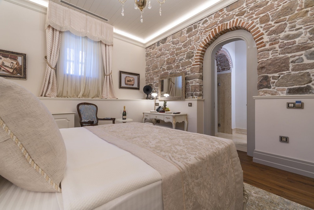 The Despot Evi in Cunda is an astoundingly beautiful facility. The reconstruction has brought the rich history to life in a sexy manner. And the staff is top notch. But the 1 problem I had which was significant is that there is a Mosque adjacent to the hotel property. So 5 times a day a very loud message is blasted out for you to pray. Very loud. Very oppressive.