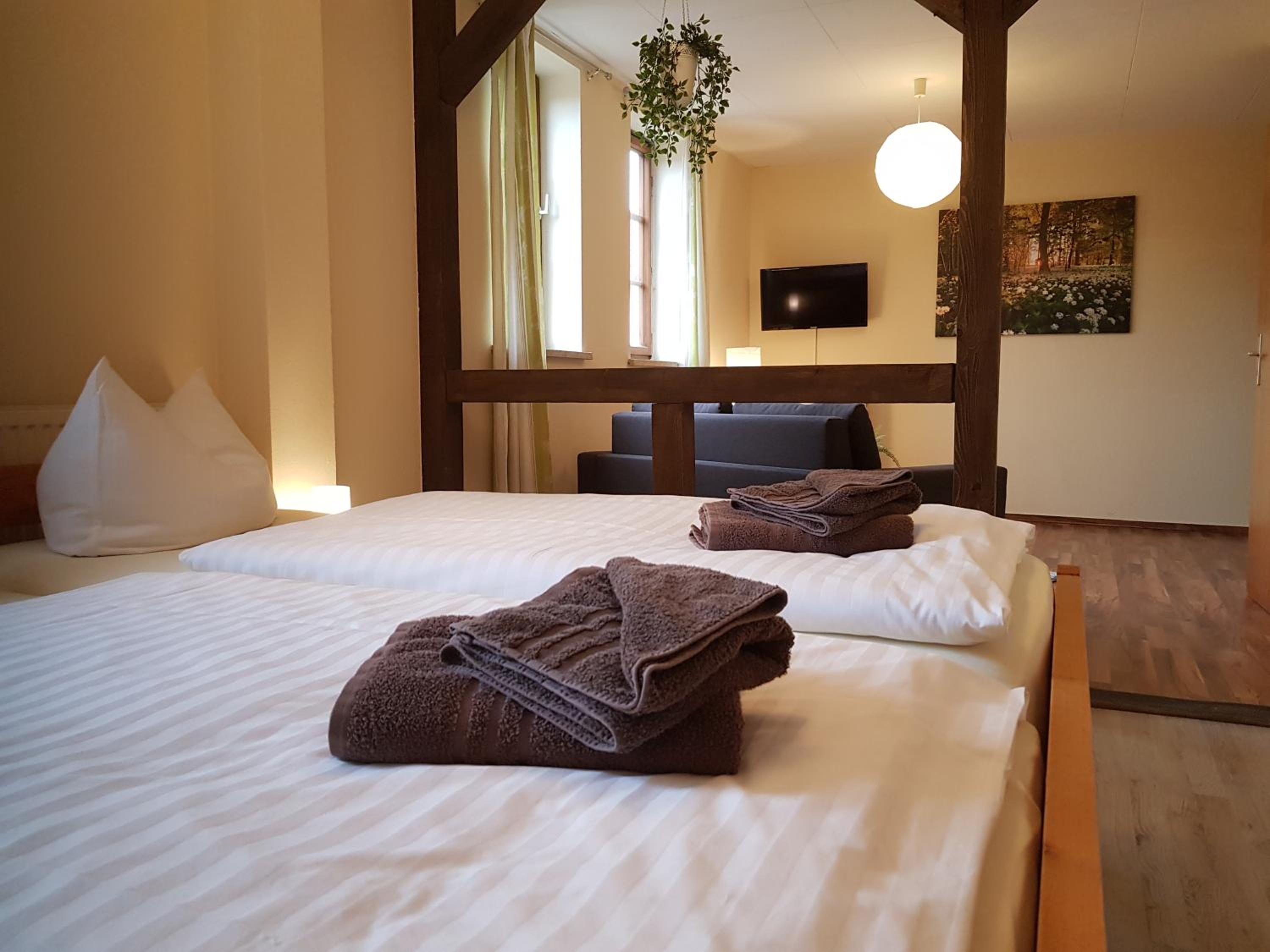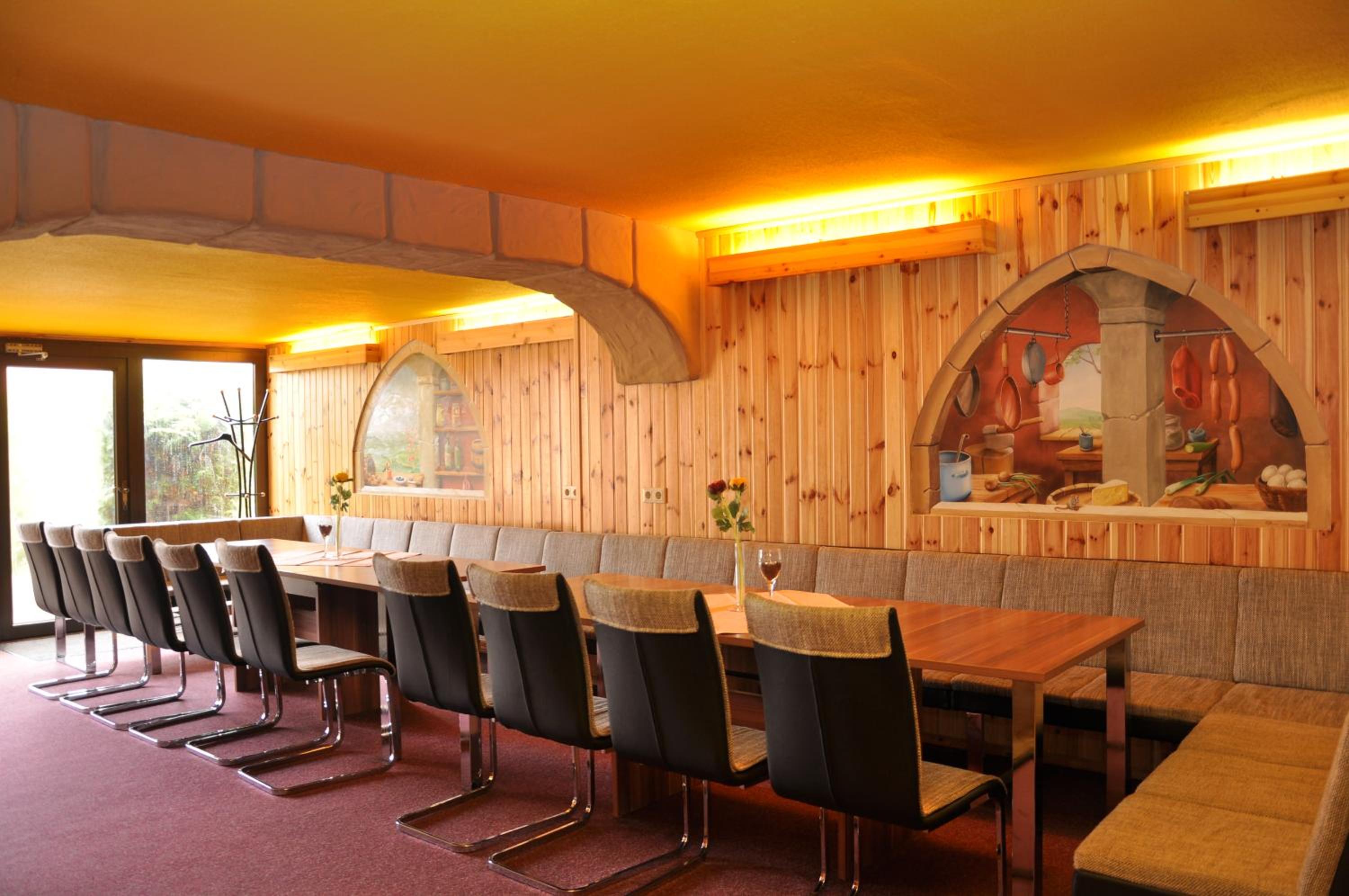 Experience a blend of history and modernity at Landhotel Edelhof in Uhlstädt. Indulge in delicious game dishes and homemade jams at the historic-style restaurant, or enjoy a refreshing swim in the outdoor pool. Unwind in the tranquil beer garden or explore the picturesque Thuringian countryside. Whether you're attending a knights' banquet or relaxing by the pool, there's something for everyone at Landhotel Edelhof. Book now for a memorable stay in this unique setting.