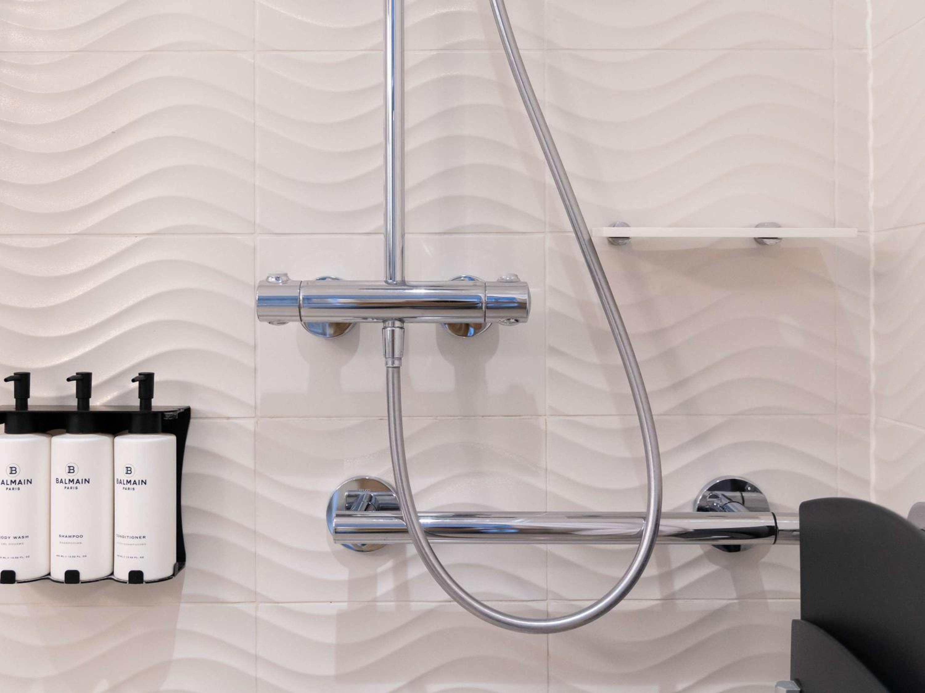 - NO towel racks. At all. Just a small handle like thing on the shower glass. But they want you to reuse towels! Where are we to hang them to dry?