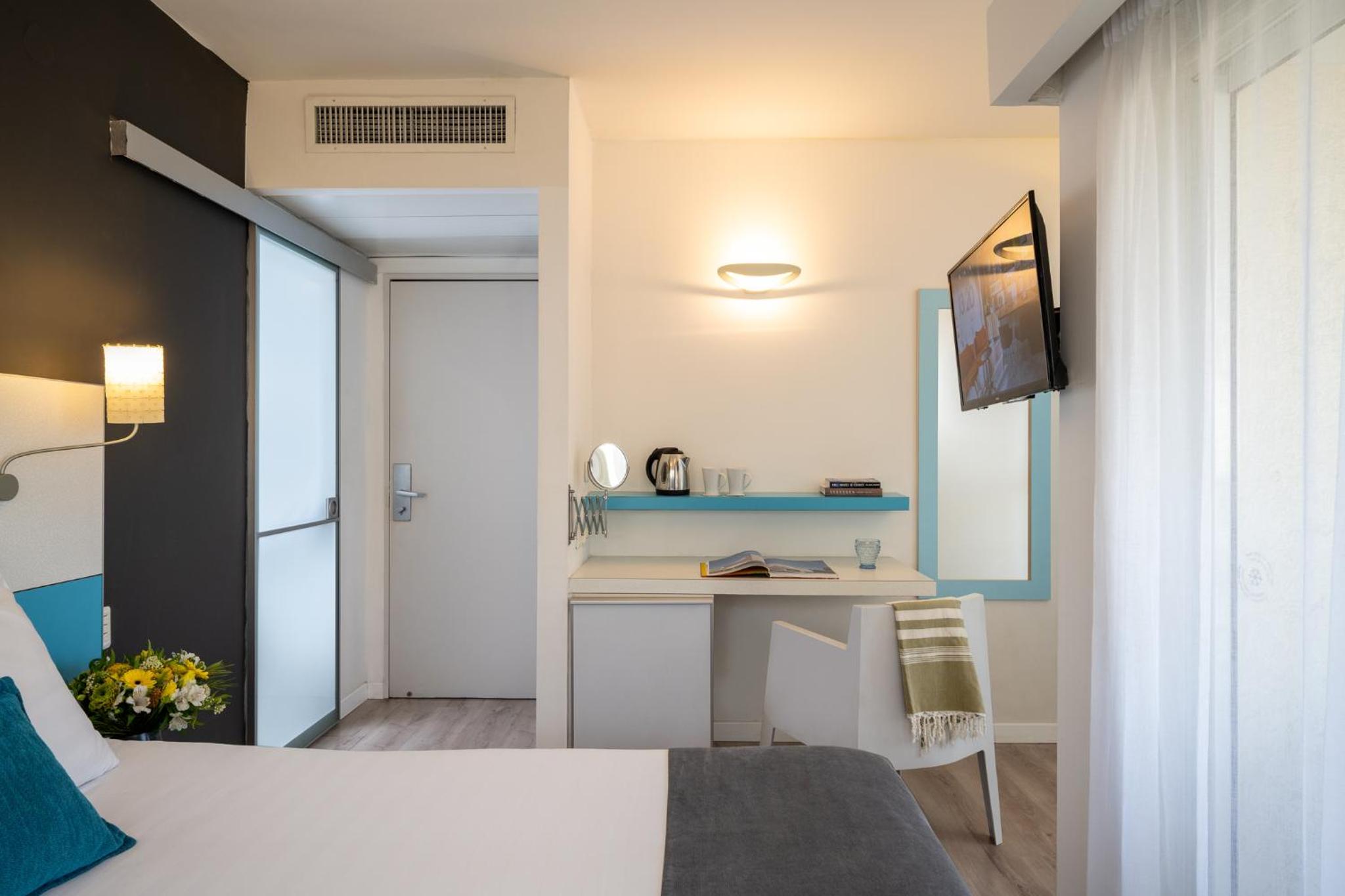The location near he sea and the city center. the breakfast was excellent but one needs to walk to the other building of the hotel, about 300 m apart after crossing a very busy street.