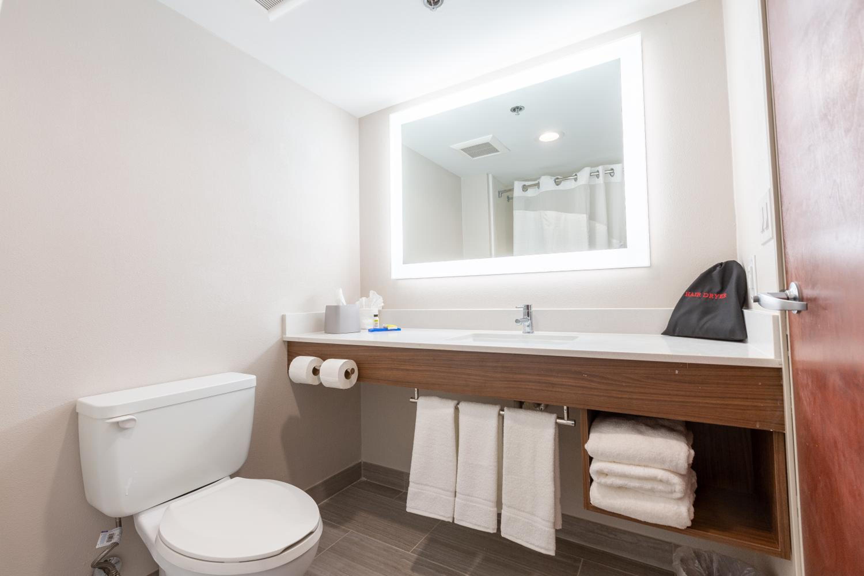 The room was sufficient and the beds were comfortable for our overnight stay. I did like the lighted mirror in the bathroom.