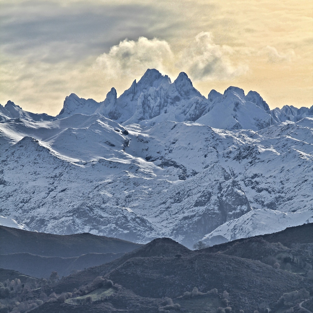Absolutely stunning mountains! And a beautiful rustic converted farm complex, set with mountain views all around, lambs frolicing in the nearby field, wonderful breakfasts and dinners available, and friendly staff available to chat to you in Spanish, English or French and give advice about the most magical places to visit. We felt so welcome and had a completely magical time! Would highly recommend. Especially a trip to Bulnes, mountain village reachable by funicular, and Covadonga Cathedral, cave and waters. Beautiful lakes, mountains and views everywhere you look, and fresh clean air. For those who aren't good in hot sun, a January visit is very comfortable cool gentle winter temperatures, and I imagine it would be wonderful for sun lovers in the the Spring/Summer. We felt greatly cared about and had a truly magical time - on top of the world! Thank you so much.