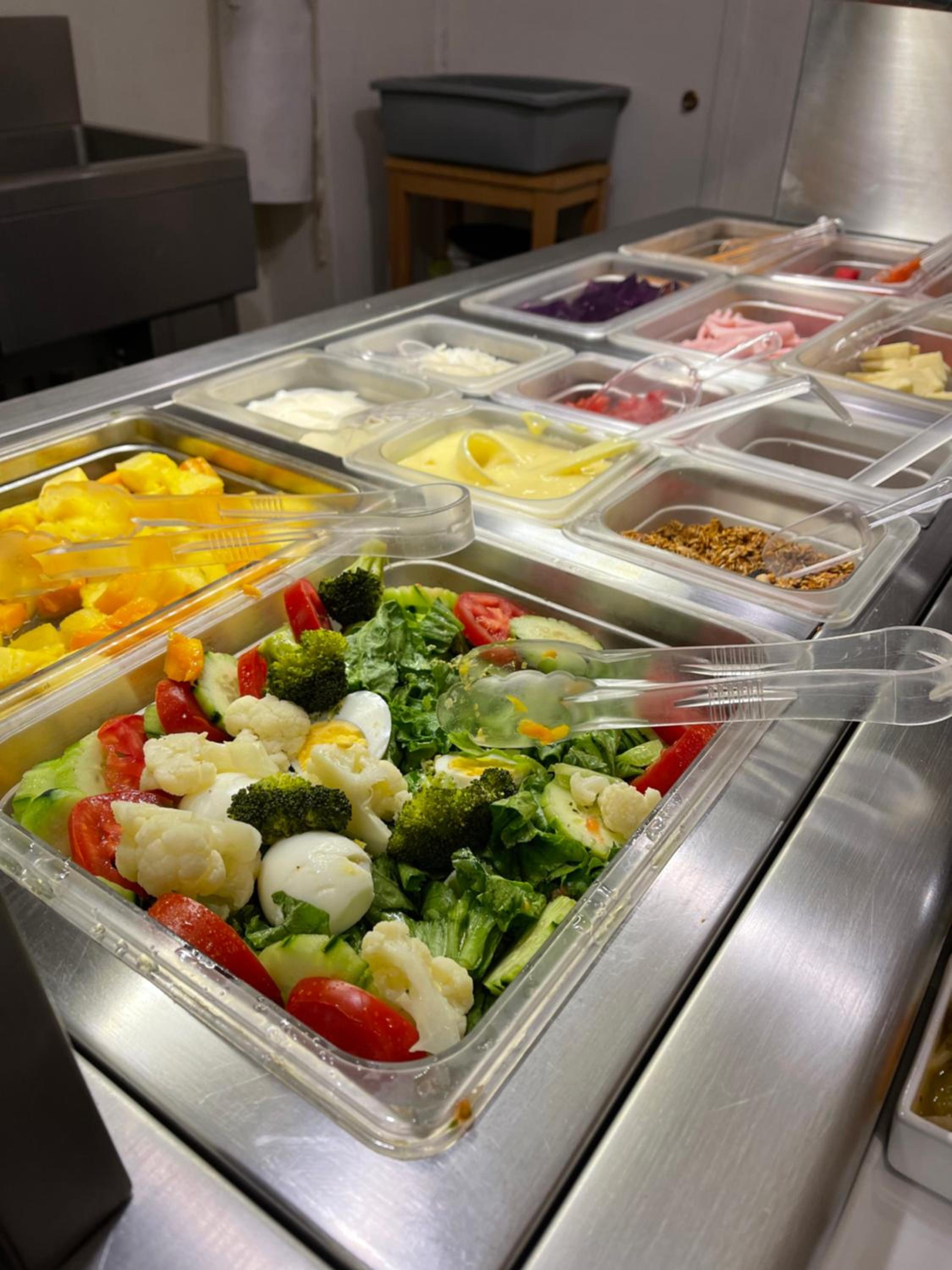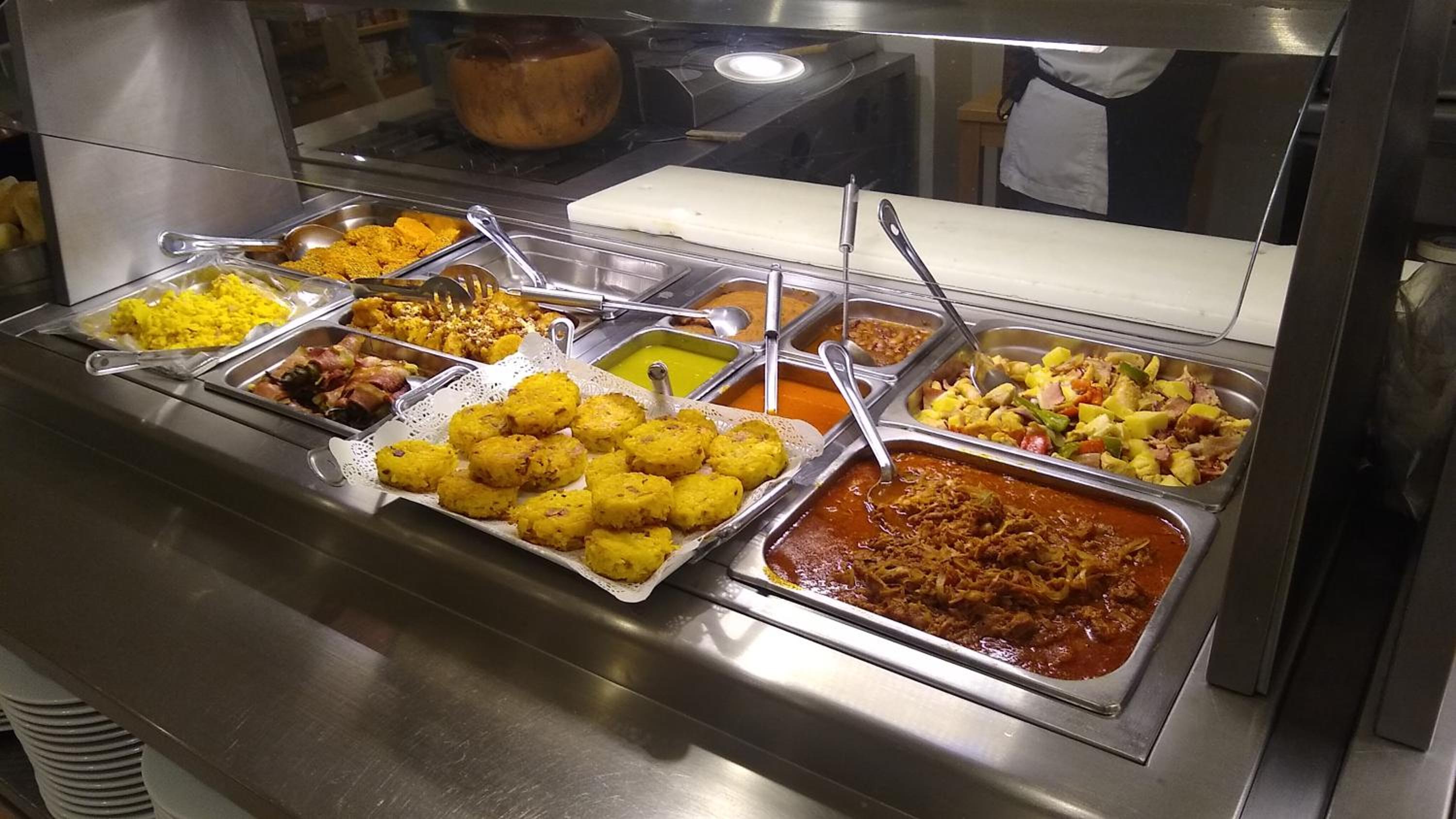 Le petit déjeuner est fort bien garni.