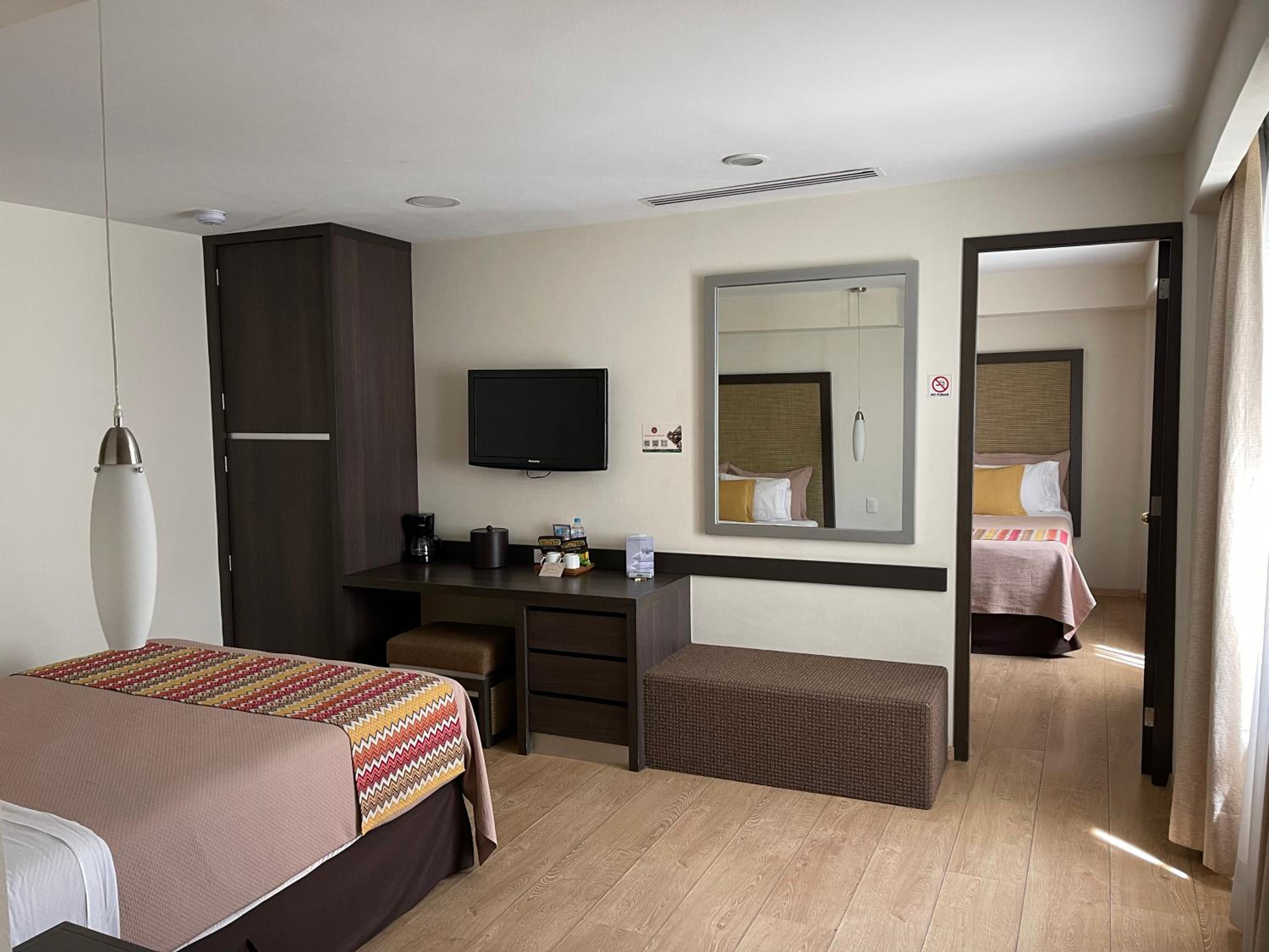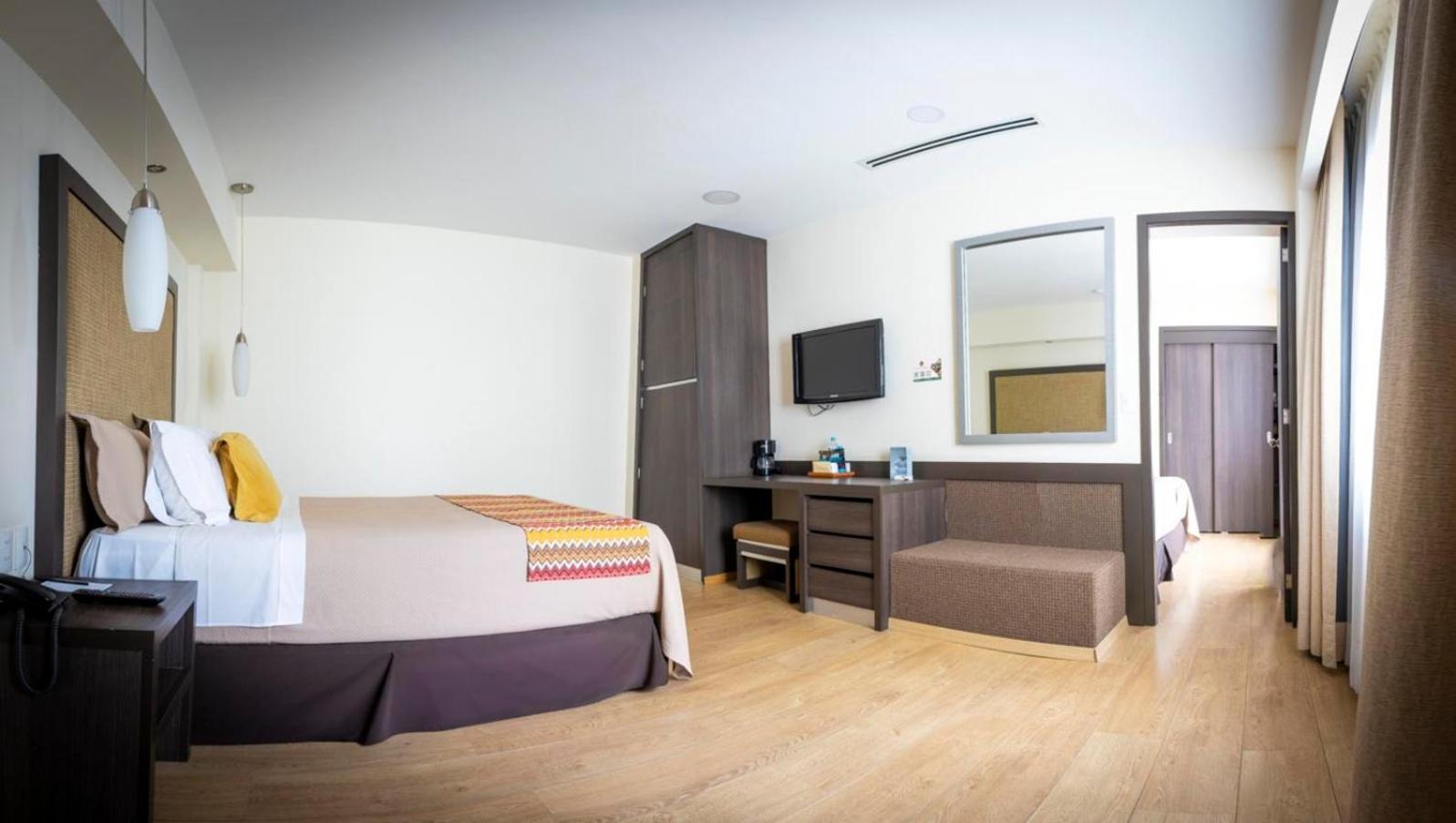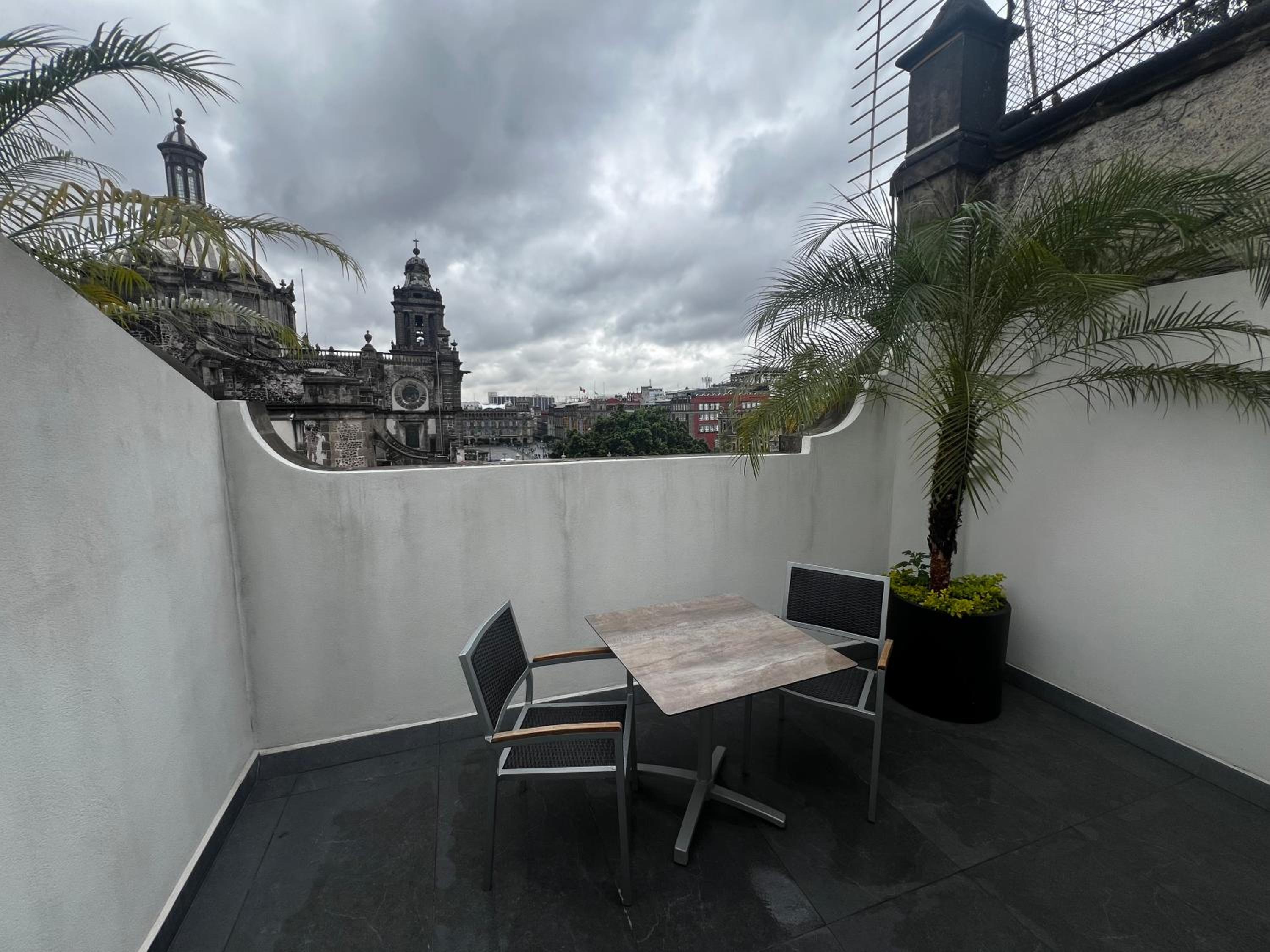 Calme . La gentillesse du personnel . Le rapport qualité prix. La chambre impeccable , bonne literie . Nous sommes arrivés par un bus de nuit donc très très tôt à l’hôtel et on a pu avoir la chambre disponible immédiatement. Bar avec vue sur le Zocalo. Le restaurant au rdv est très bon . Bref c’était parfait !
