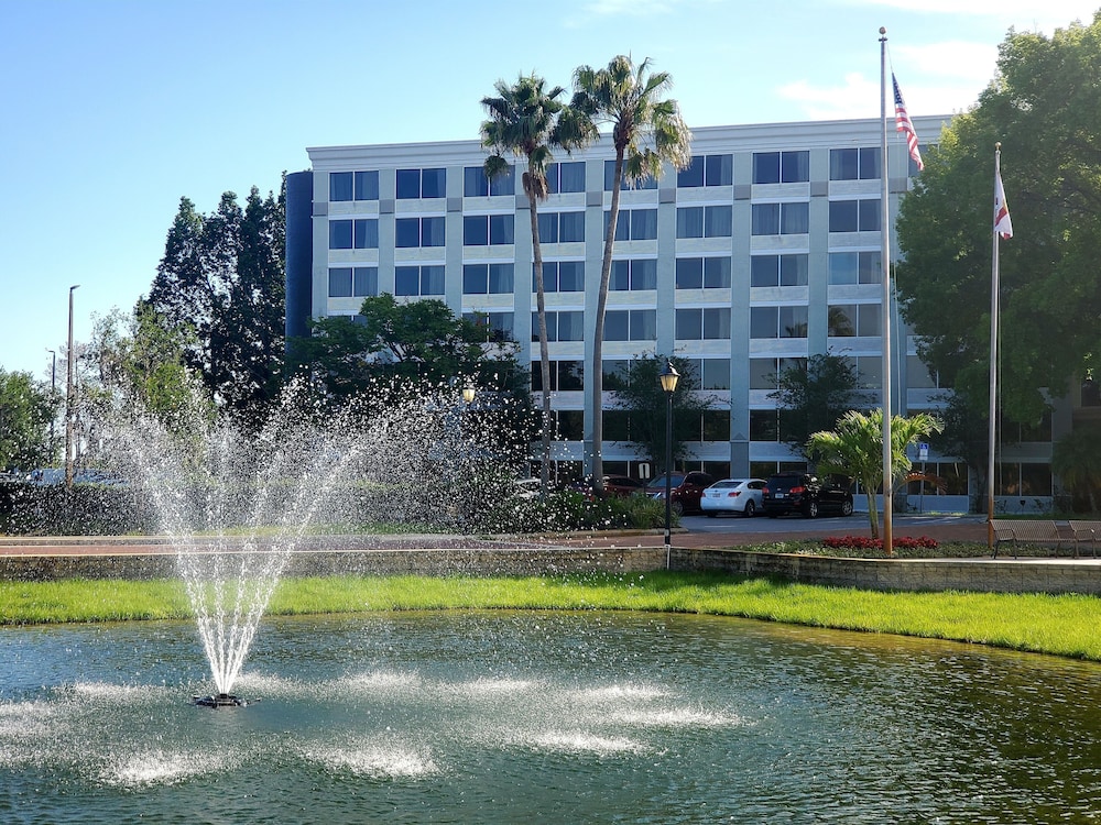 Unfortunately, this property looks different in person than it does in pictures. Staff were friendly and quick to attend our needs, but the Hotel requires a lot of attention and is outdated. For one, the majority of the outlets in our room were not working properly and after being in the parks all day this is unfortunate because all of our electronics needed to be charged. I called front desk and they sent maintenance out quick to fix the issue so this was a plus. That same night we got dinner and put our leftovers in the fridge just for us to wake up the next morning and realize the fridge stopped working over night and our food had gone bad. We had to throw the food out. We also had to wait a while before showering after someone because the shower would flood and wouldn’t drain properly. The carpet smelled of mildew and had stains around the baseboard. The table inside the room that could be used for working or eating was janky and kept wobbling anytime we set anything down on it.