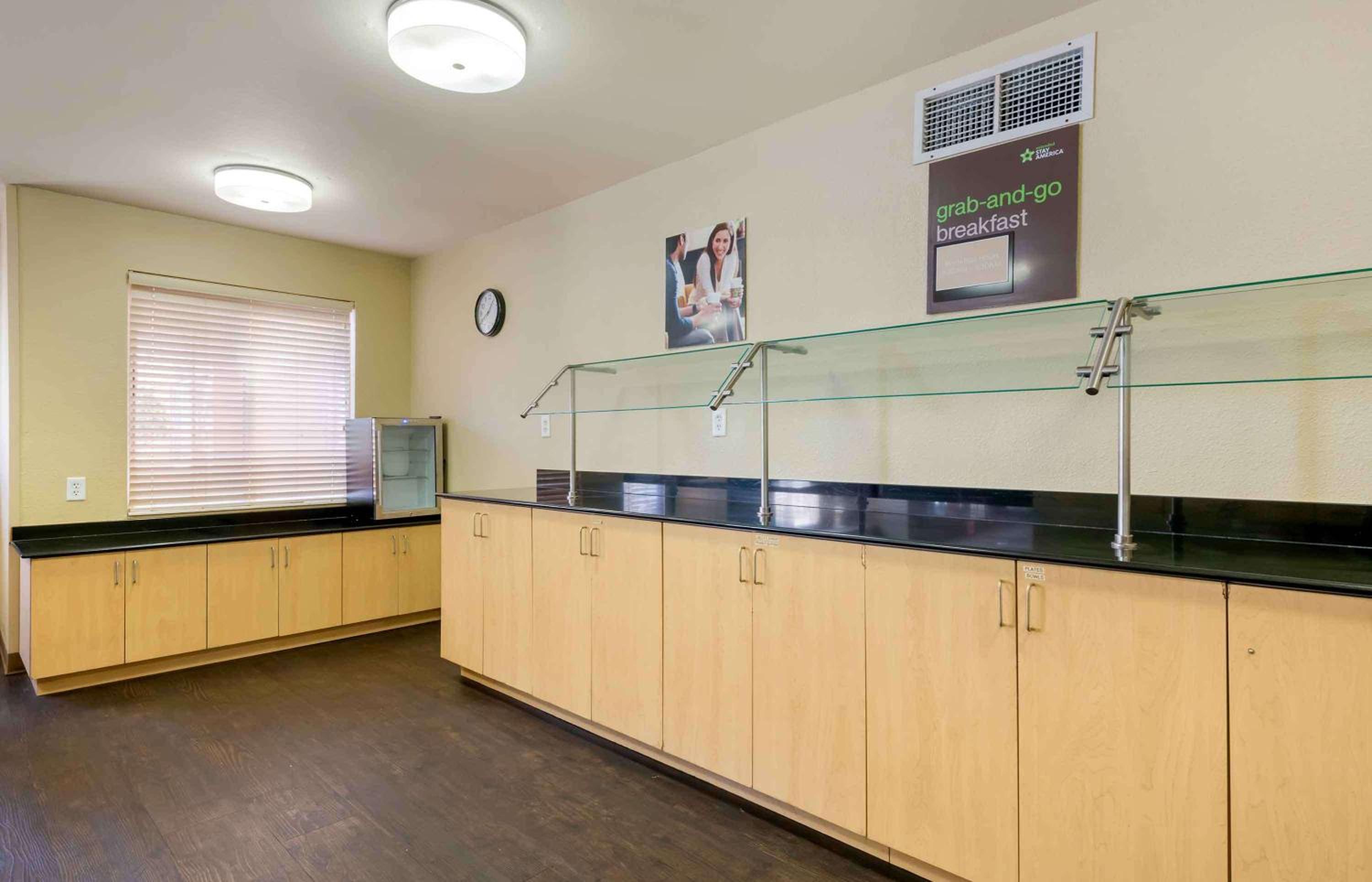 The grab-and-go breakfast served includes breakfast bars, muffins, hot cereal, coffee and tea only.