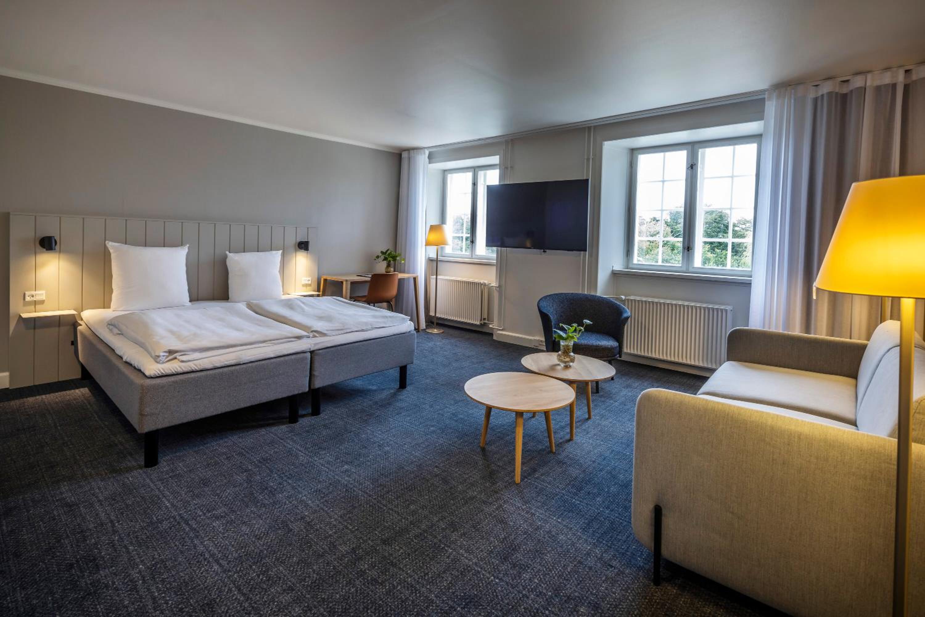 Experience a stay like no other at Comwell Bygholm Park, nestled in the picturesque Bygholm Park and housed in a charming converted manor house. Each guest room offers a cozy seating area and a TV, providing the perfect retreat after a day of exploration.