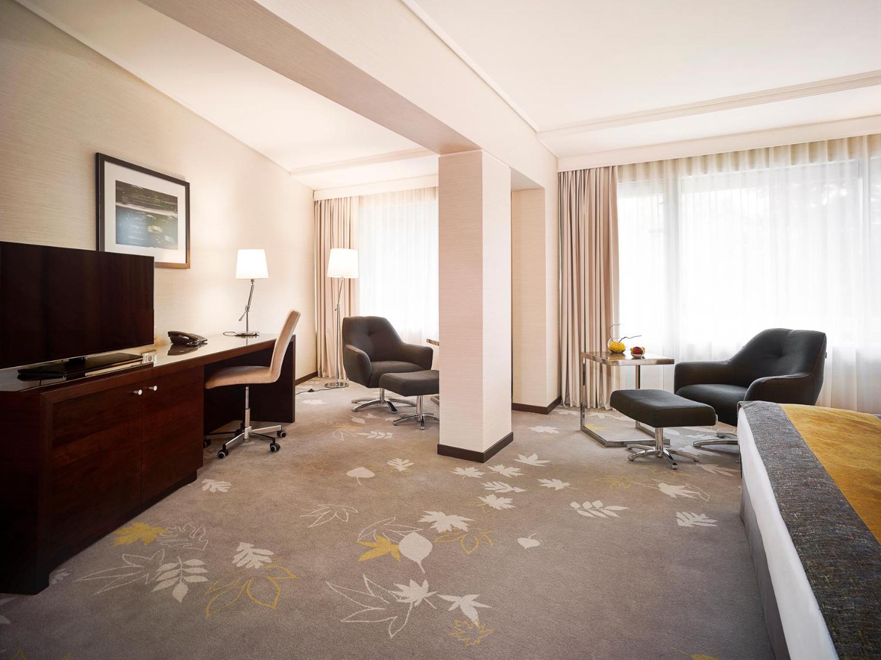 Experience top-notch luxury at our hotel located next to the RomExpo exhibition centre. Enjoy soundproofed rooms and suites with HD LED TVs, air conditioning, and complimentary WiFi. Wake up to a delicious American buffet breakfast and savor international cuisine at Pine Restaurant & Terrace. Unwind at ANA Spa with a variety of facilities including a swimming pool, fitness center, and saunas.