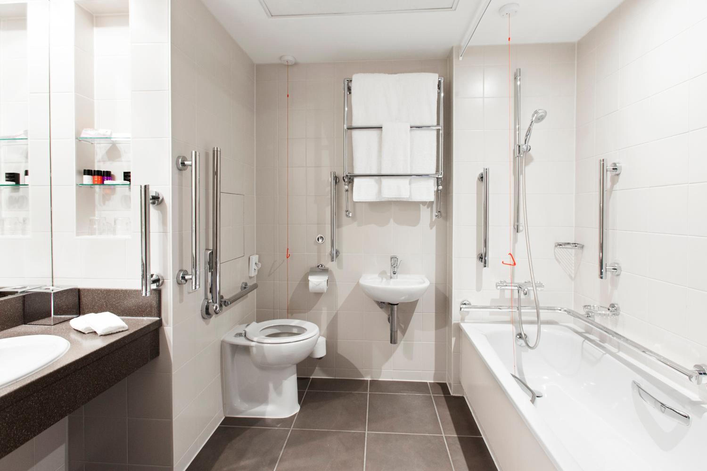 The hotel is well situated and has its own car park, although it’s £15 per 24 hrs to stay. The hotel is good but needs updating. The bathrooms especially. The water pressure wasn’t great.i had to use the disabled bathroom because the female lobby toilets were locked and was disappointed to see that hadn’t been cleaned well with dried pee/drips stains on the floor. The lobby and bar was updated, butchered bar staff could have been more fun and friendly, it was busy and could have made more money with a good atmosphere. Breakfast was ok but not really enough room for guests given the size of the hotel. Lots of waiting guests waiting to be seated.