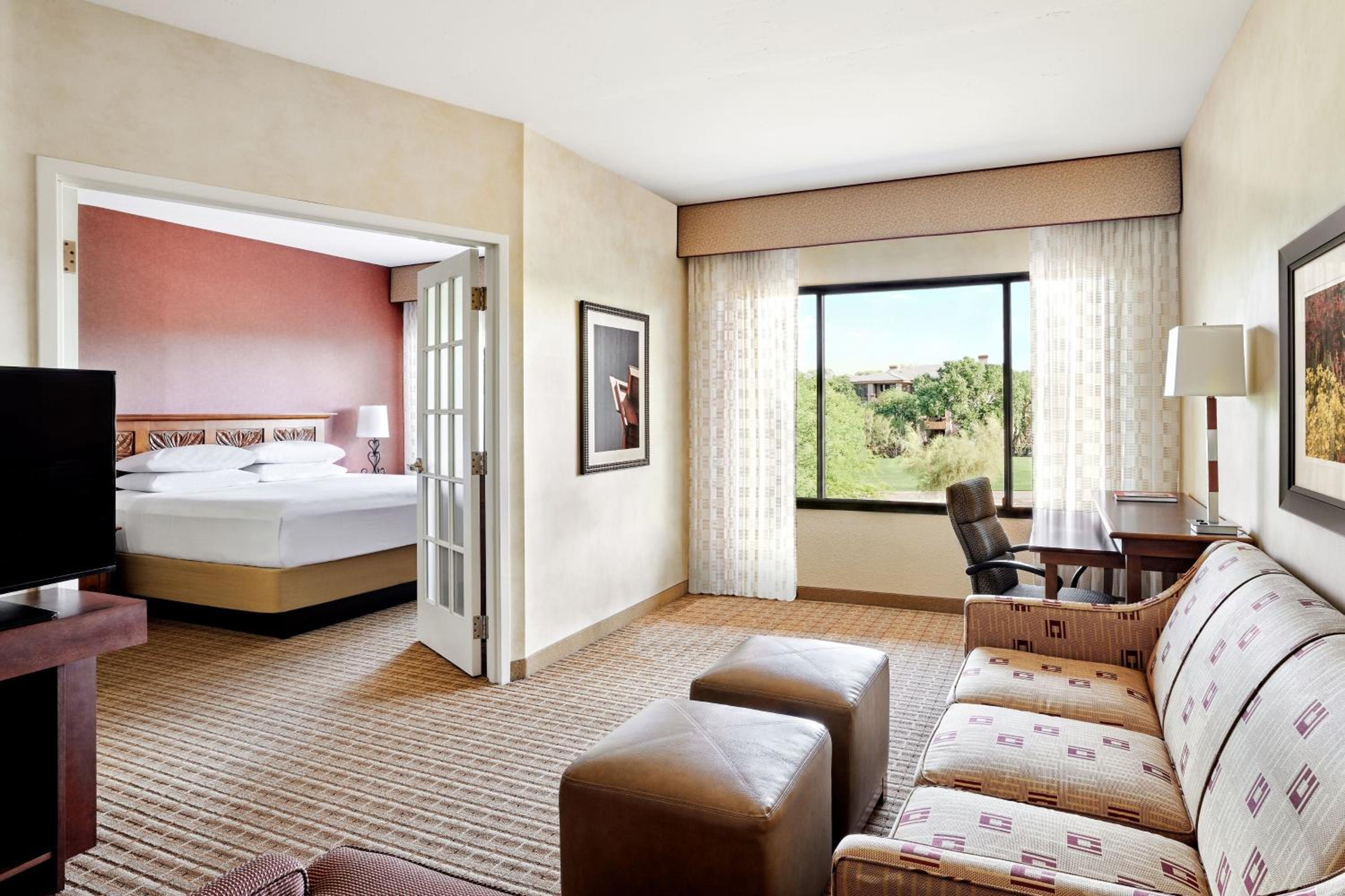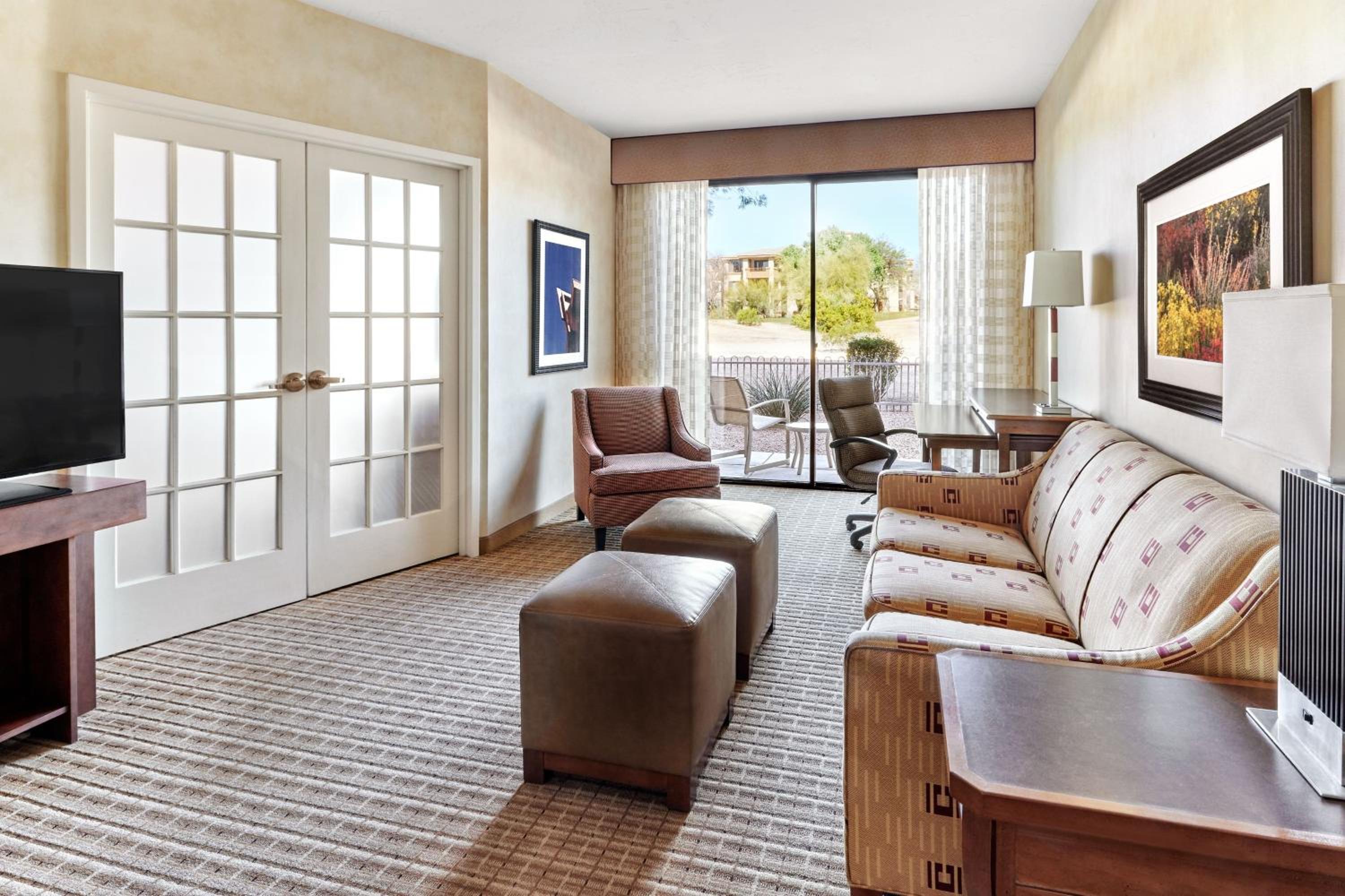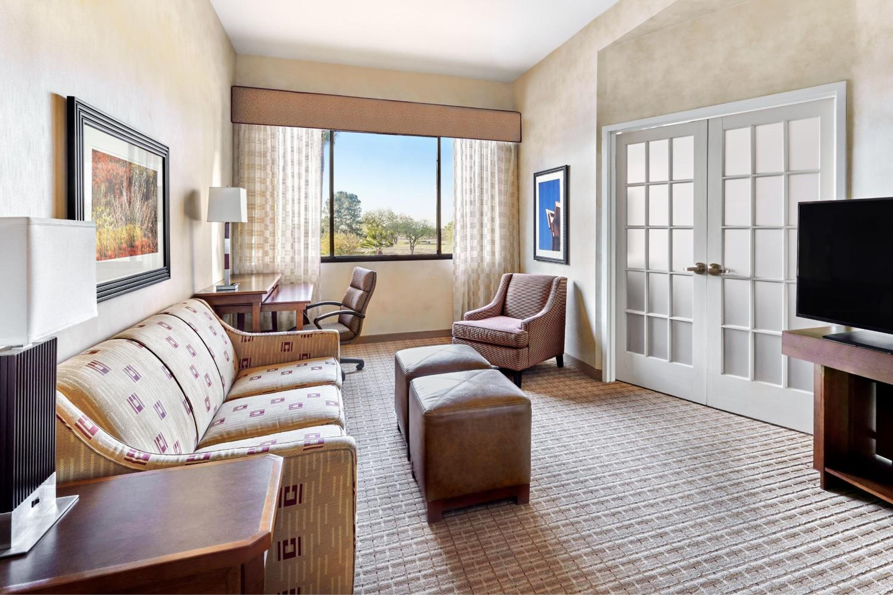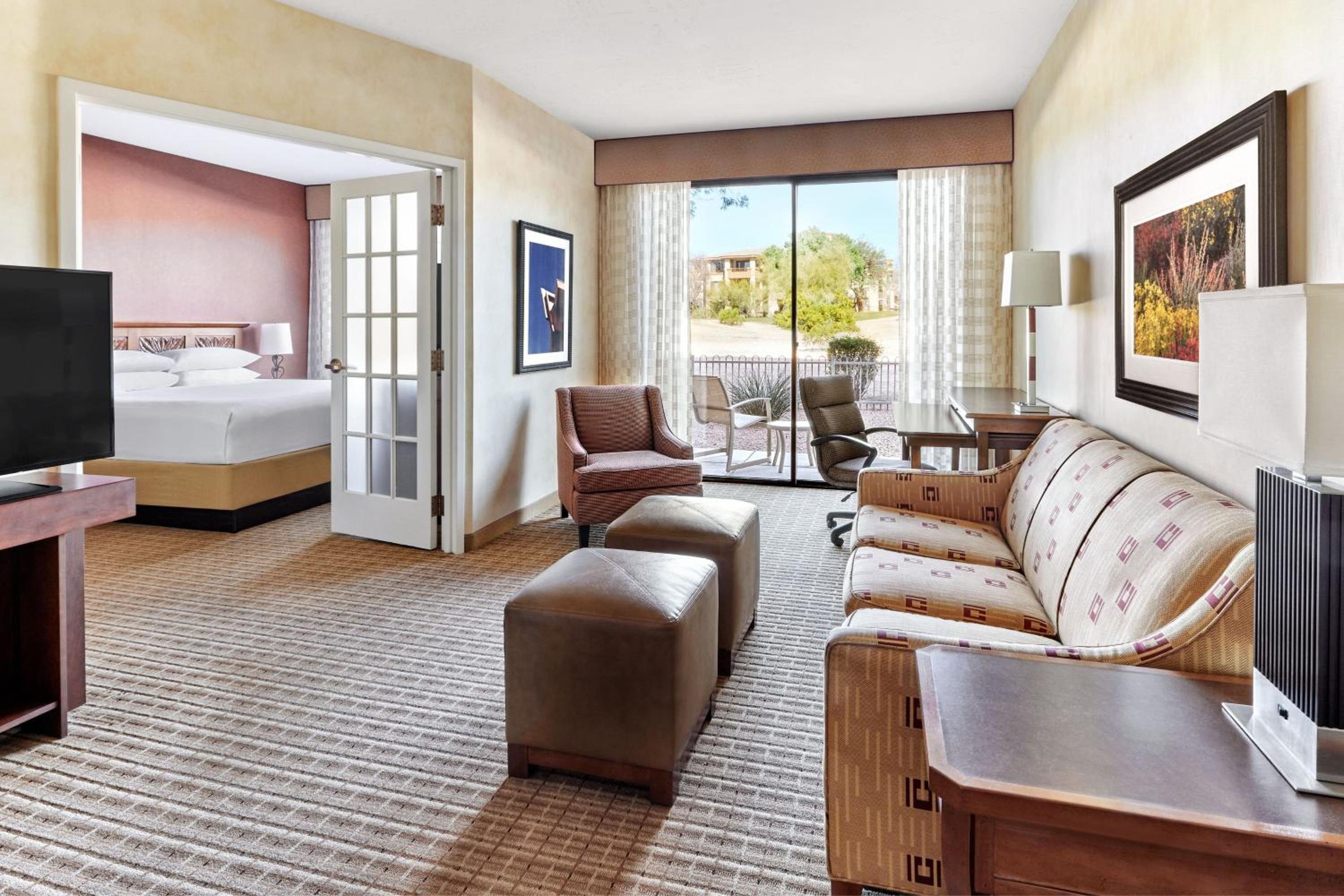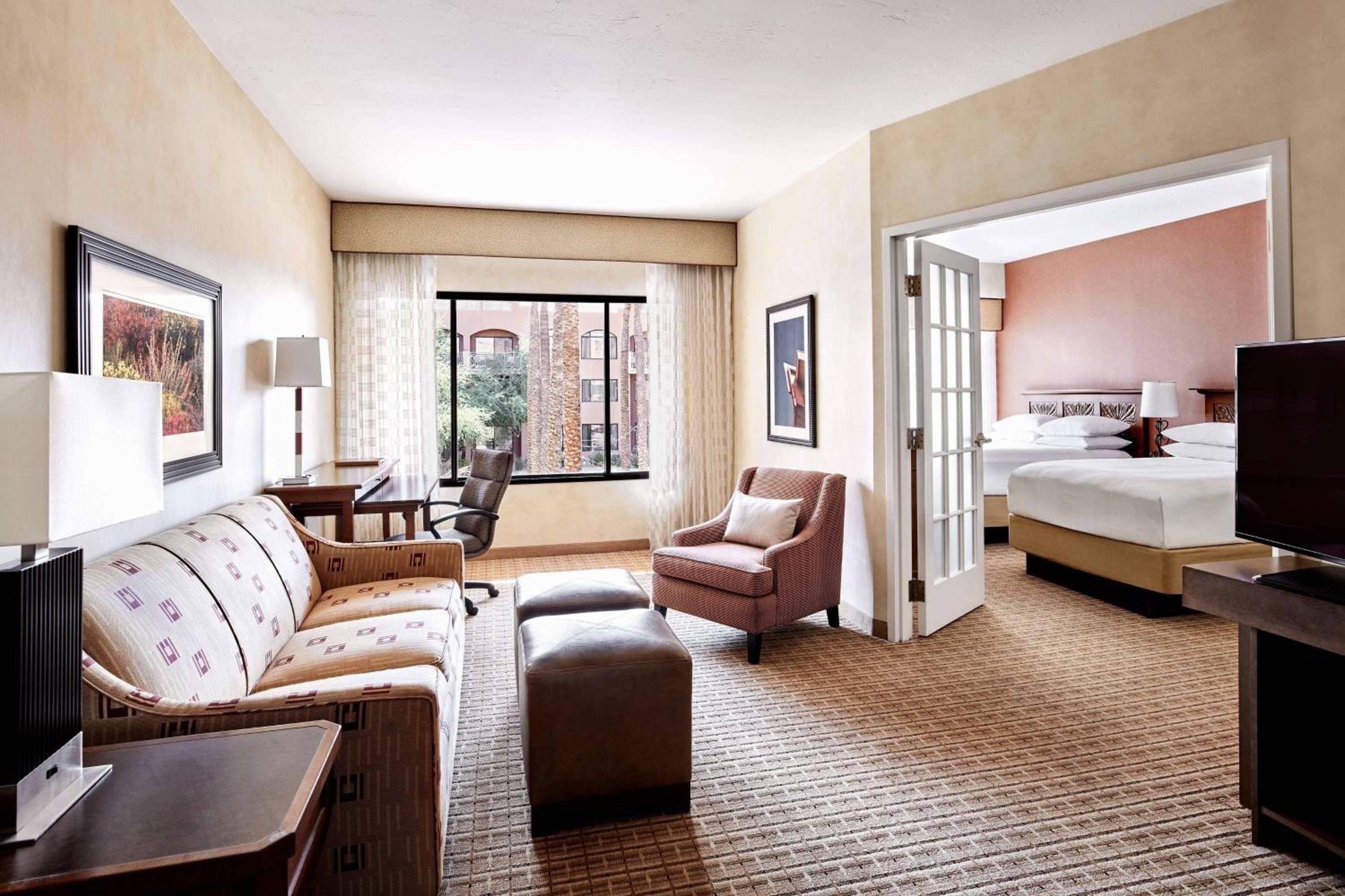 The suites at Scottsdale Marriott at McDowell Mountains boast large windows, a living room, and a separate bedroom. Enjoy the comfort of a wet bar and a small refrigerator in each suite.