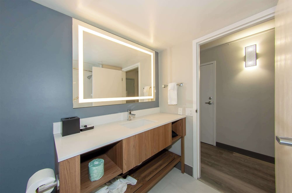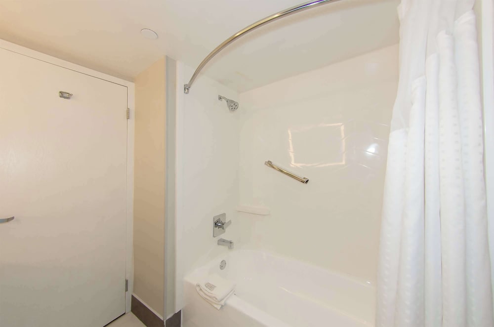 Well, we arrived quite late so we were tired. The front desk was very friendly and helpful, assisting us with our luggage cart, etc. In our handicap accessible room, he lowered the coffee maker for us. Nice guy. First thing right away we noticed there was no hand soap at the bathroom sink. We called the front desk and they sent some up right away. I think they use a toilet that conserves water because we found our waste didn’t flush completely even after several flushes. I thought I reserved a handicap accessible room with a roll-in shower, but I might be mistaken on that. The shower was “accessible” but not roll-in. We adapted cause that’s what we do. ;) When we turned down the sheets of our bed, there was a dead fly laying in the bed. I about died! If I hadn’t have been so tired I would’ve demanded someone come up and change the sheets but we were exhausted. When we turned on the tv, on the screen was a message “software upgrade! Do not power off!” The upgrade didn’t progress so we couldn’t change the channel or volume. Other than the desk staff being so kind and the beds so comfortable, our stay wasn’t considered satisfactory.