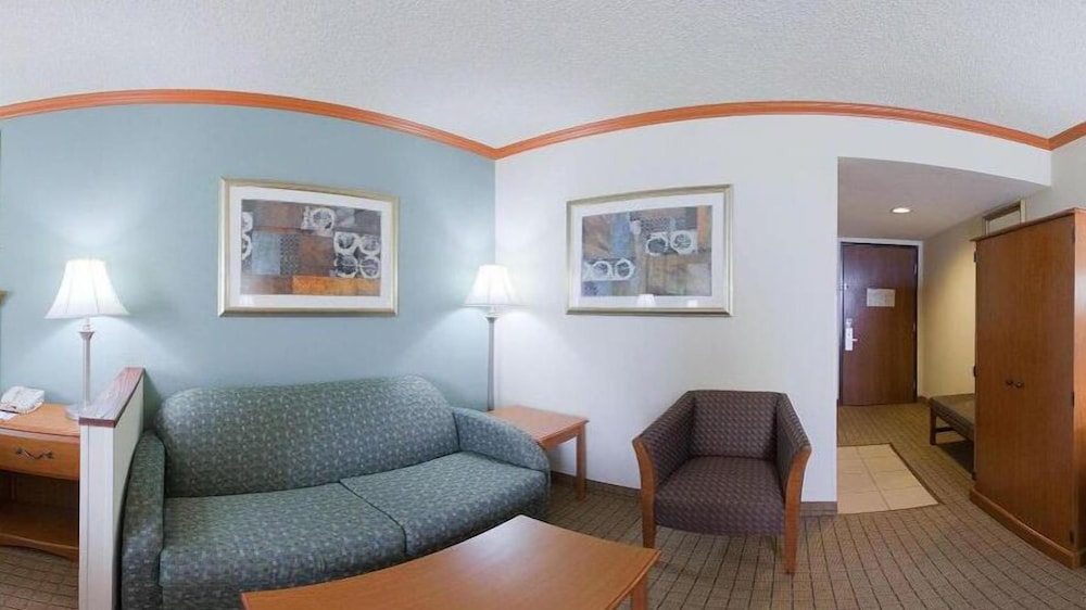 Near the airport with free shuttle service. Good size room. Shower is clean though sonewhat dated.