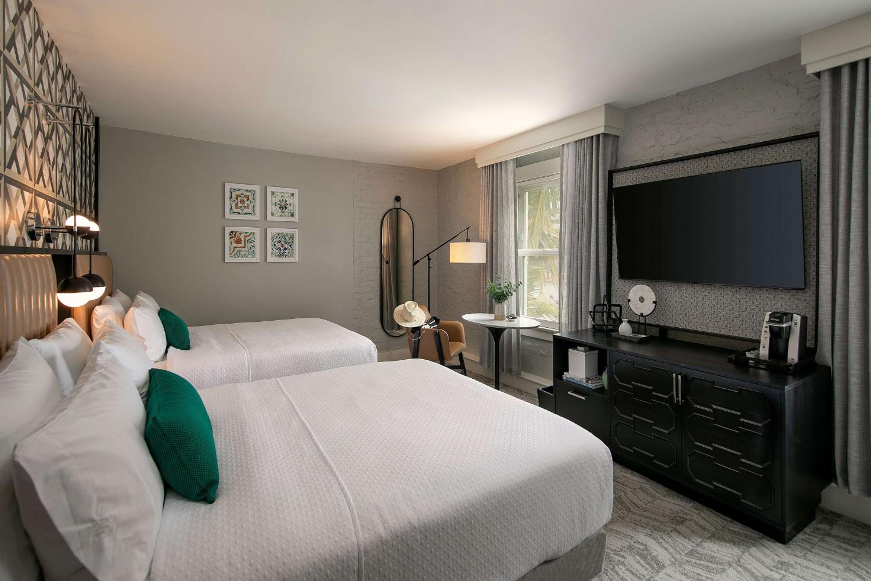 Luxurious Accommodations: Each guest room at Hotel Virginia Santa Barbara features a flat-screen TV, free WiFi, and essential amenities like a refrigerator and coffee maker.