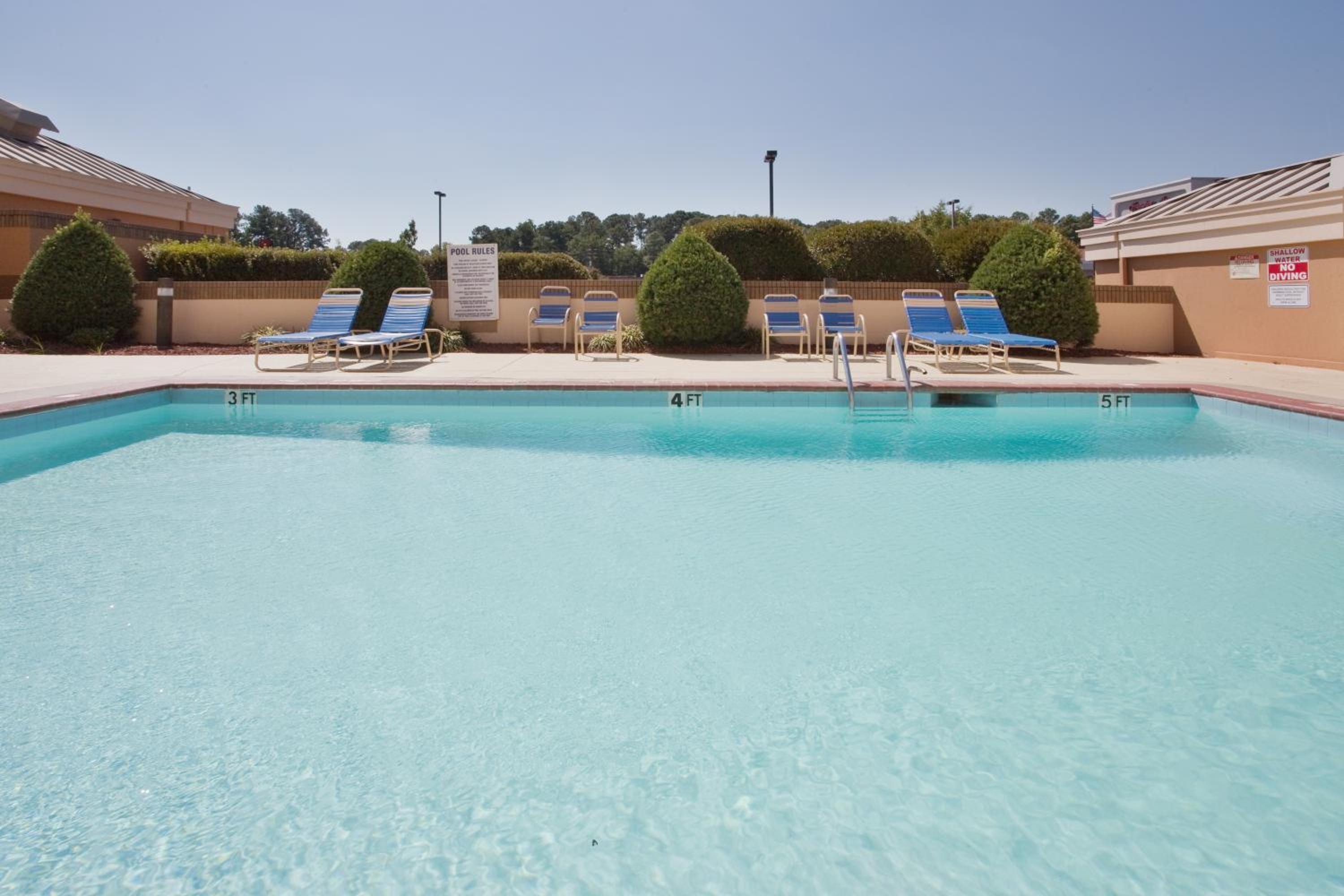 Guests at our Goldsboro hotel can unwind by the outdoor pool or kickstart their day with a delicious continental breakfast - on us!