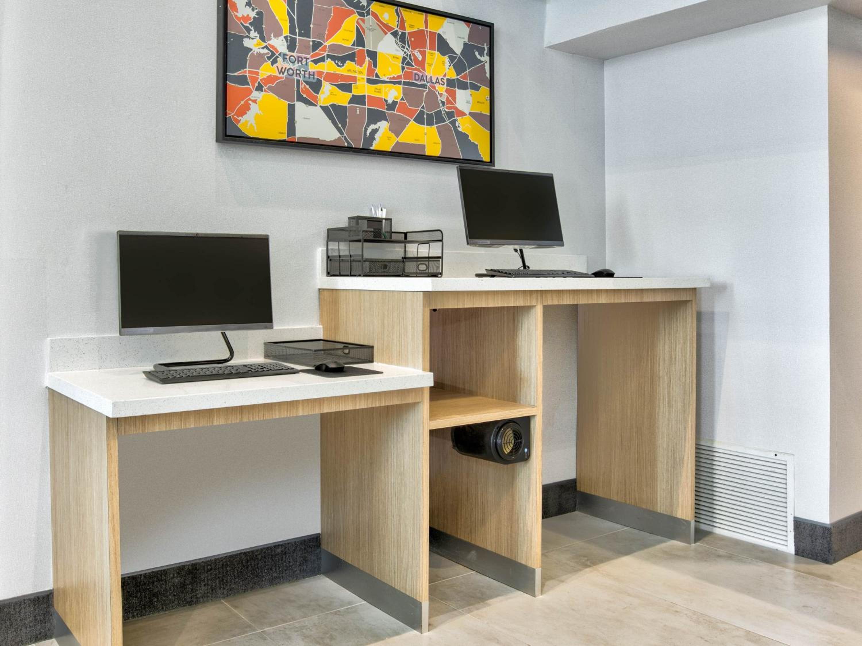 Guests can enjoy a daily breakfast buffet, free Wi-Fi, and in-room amenities like a microwave and refrigerator. The hotel also provides an airport shuttle service to DFW Airport for added convenience.