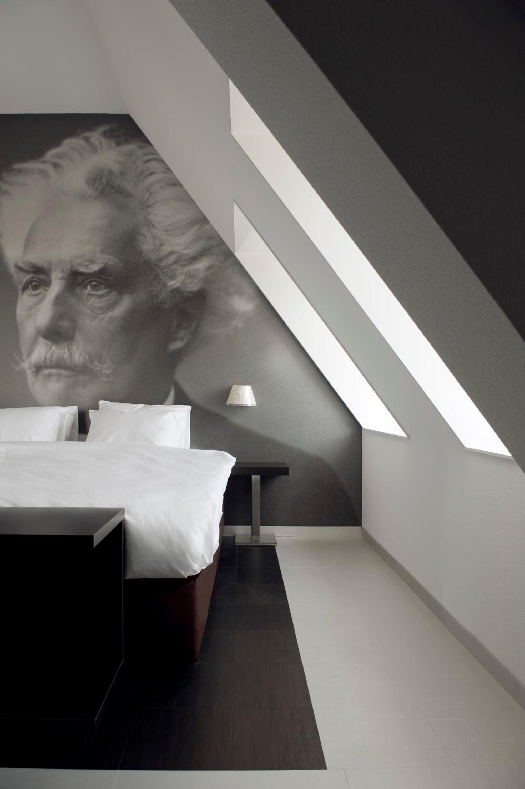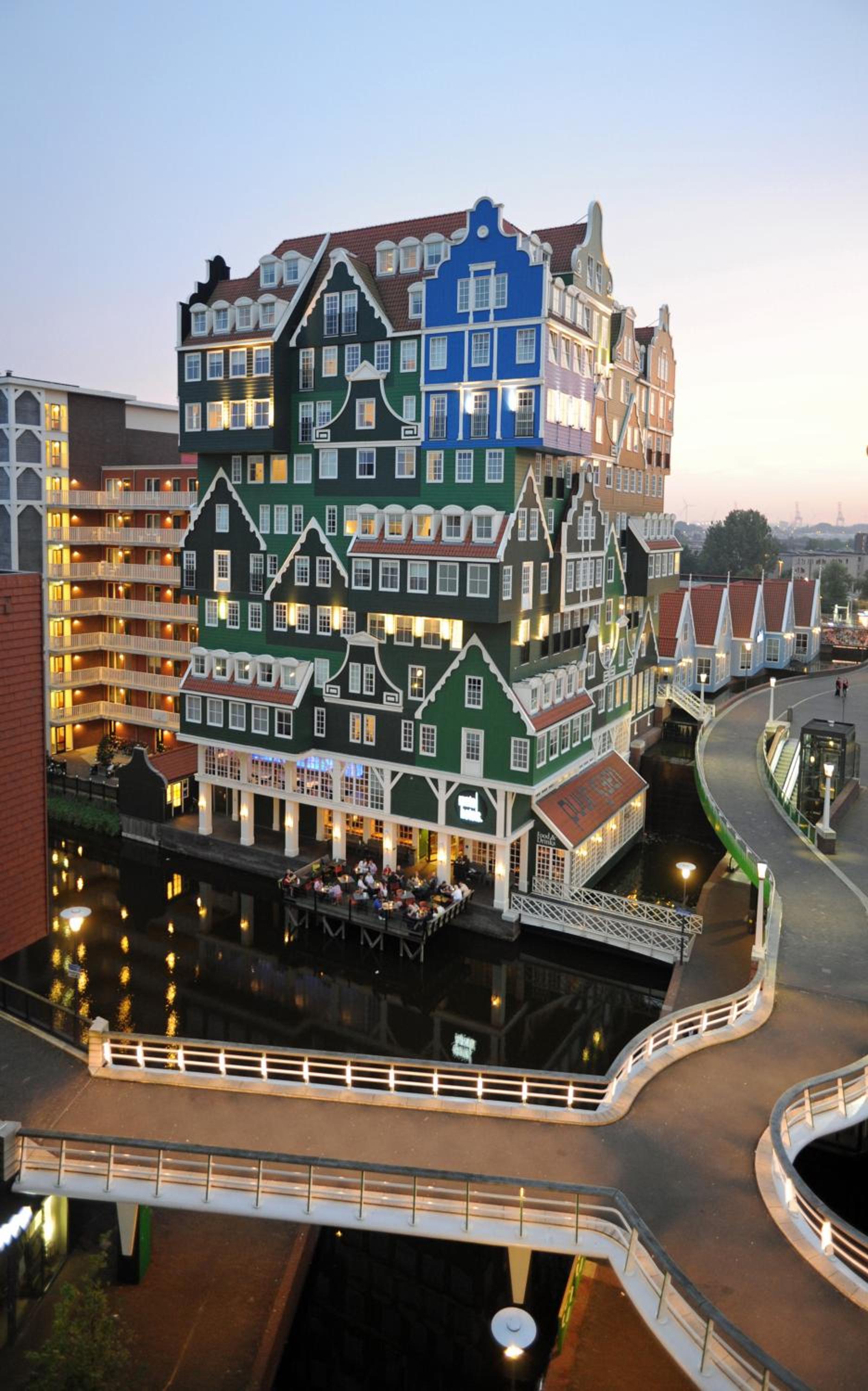 Experience the charm of Zaandam with our hotel's façade made of 70 stacked typical houses and rooms adorned with historic Dutch photos and comfortable leather chairs.