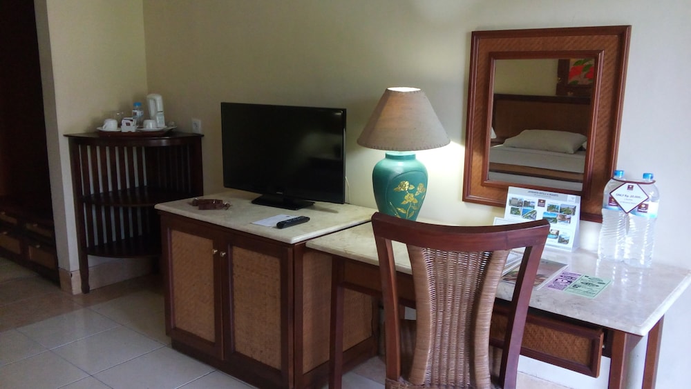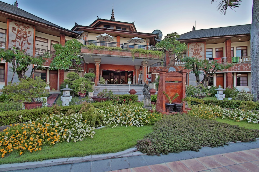 First time in Bali the hotel was wonderful three pools, the service was brilliant friendly staff good breakfast buffet. The grounds were beautiful. Across the road from the beach and easy walking to shops . Wonderful place to stay
