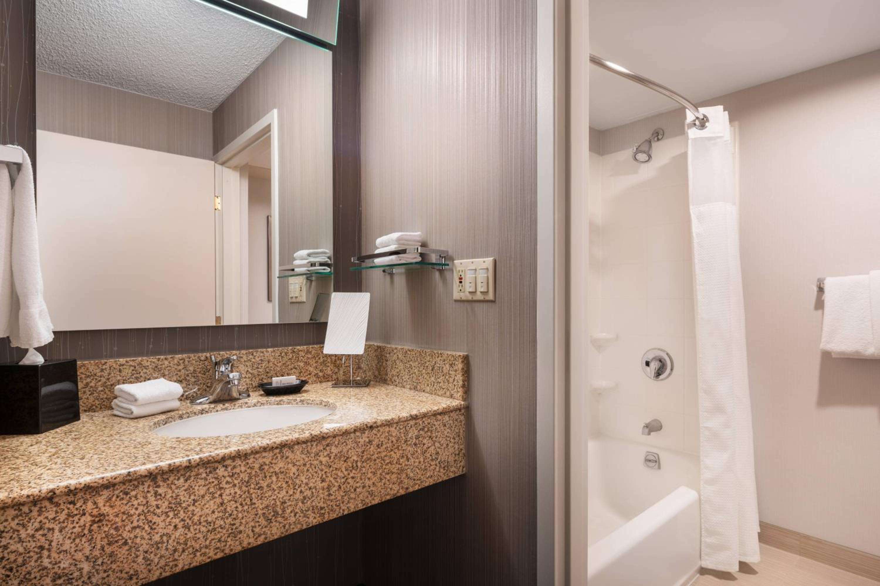 The onsite breakfast & dinner options were just what we needed to be able to arrive and relax. All staff were extremely helpful. The bed was comfortable. We appreciated fridge & microwave in room. Room was clean & water pressure was very good. Location was excellent.
