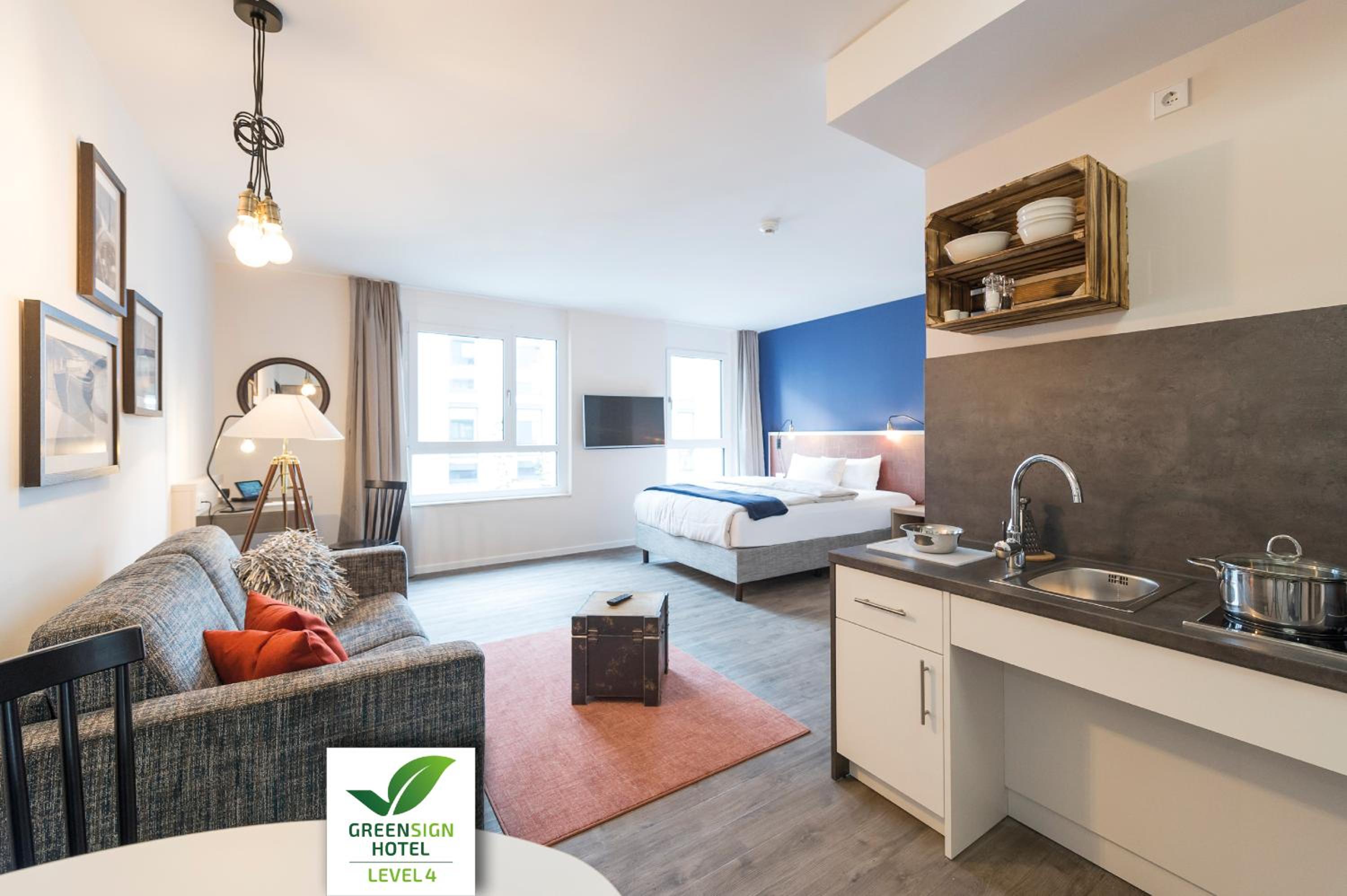 Das Apartment Hotel liegt sehr zentral, die Innenstadt ist fußläufig erreichbar. Alles war sauber und ordentlich, es gibt eine Kaffeemaschine, Kaffee, Tee und Milch in kleinen Mengen.