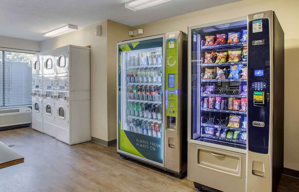 Stay connected with complimentary wireless internet and unwind with cable programming on 32-inch flat-screen televisions. Our 24-hour front desk and on-site laundry facilities ensure you have everything you need for a hassle-free stay.
