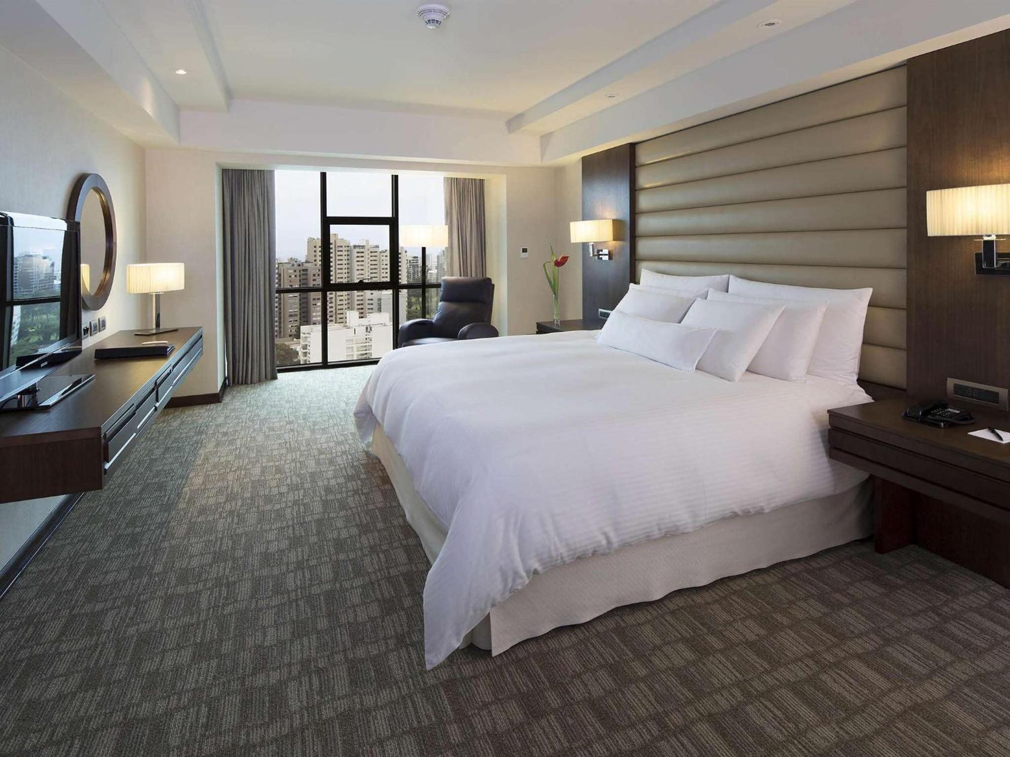Swissôtel Lima offers 345 rooms and suites with marble baths, plush bedding, and modern amenities. Upgrade to an Executive room for exclusive access to the Presidential Club.