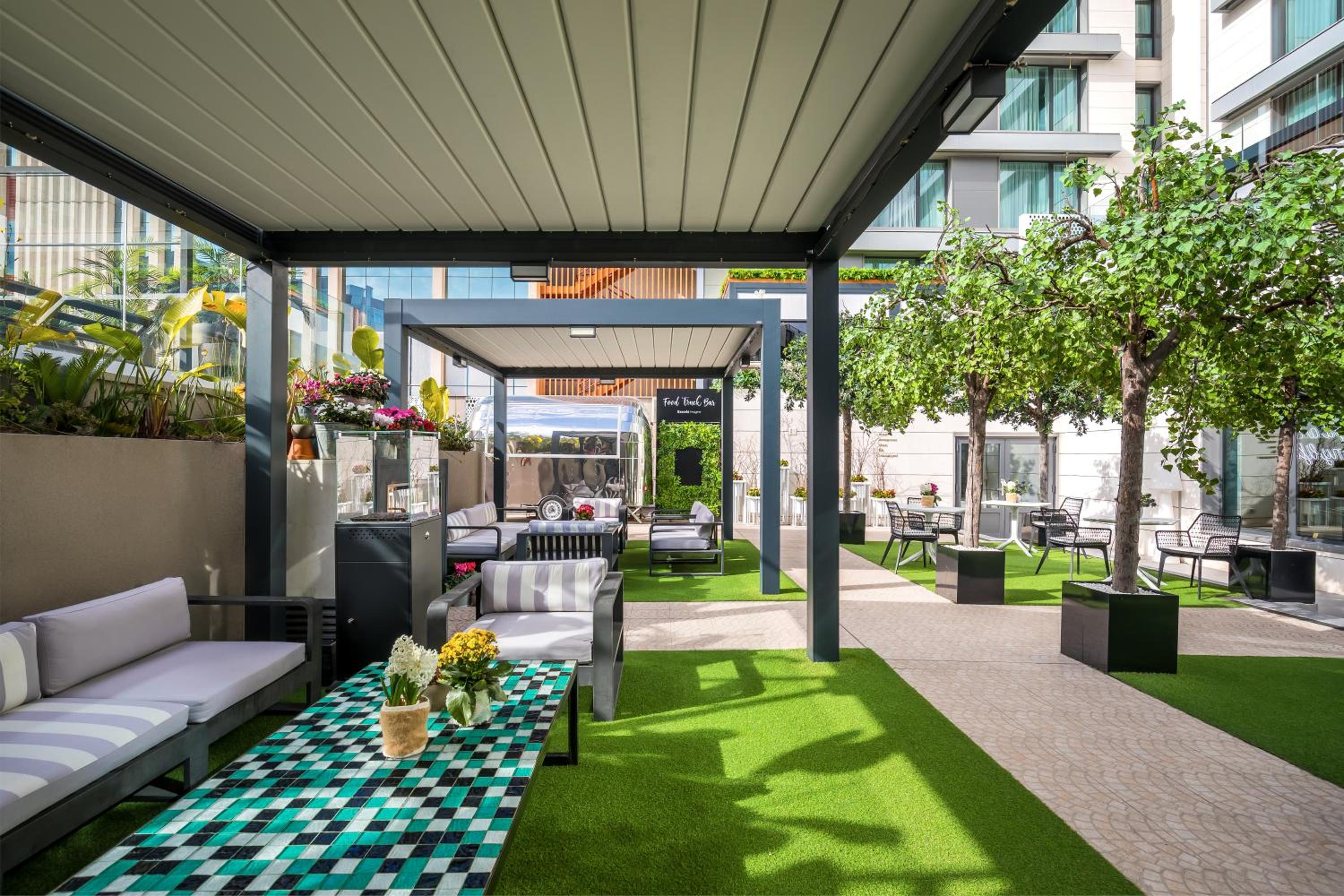Relax at the rooftop terrace with a refreshing outdoor pool or enjoy panoramic views of Madrid at the Sky Lounge while sipping on handcrafted cocktails. Host successful events in the versatile meeting rooms with access to a terrace for a memorable experience.