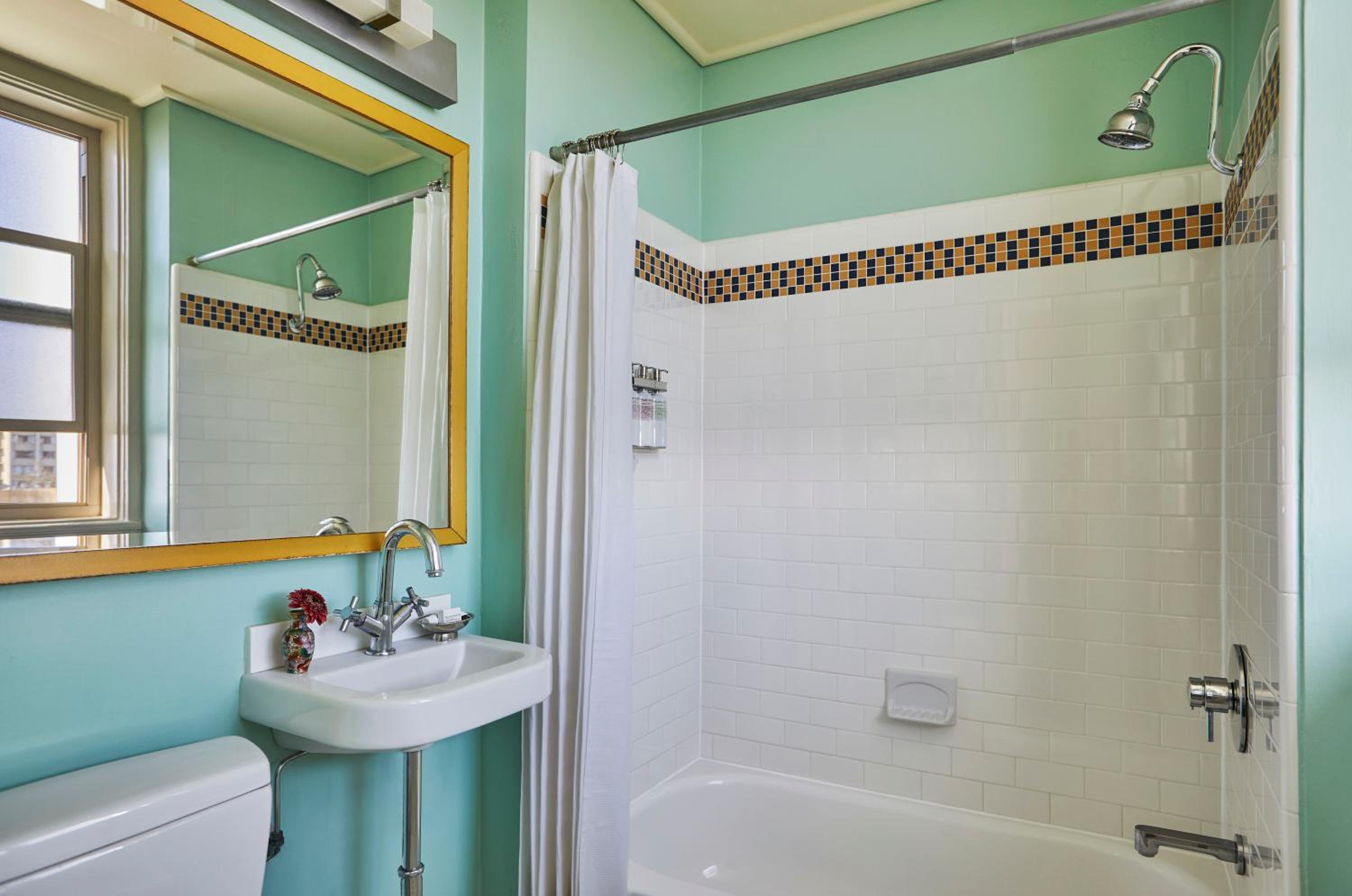 The bathroom was small with a non-updated shower and tub. The front desk could not assign a double bed room until well past check-in time due to cleaning delays.
