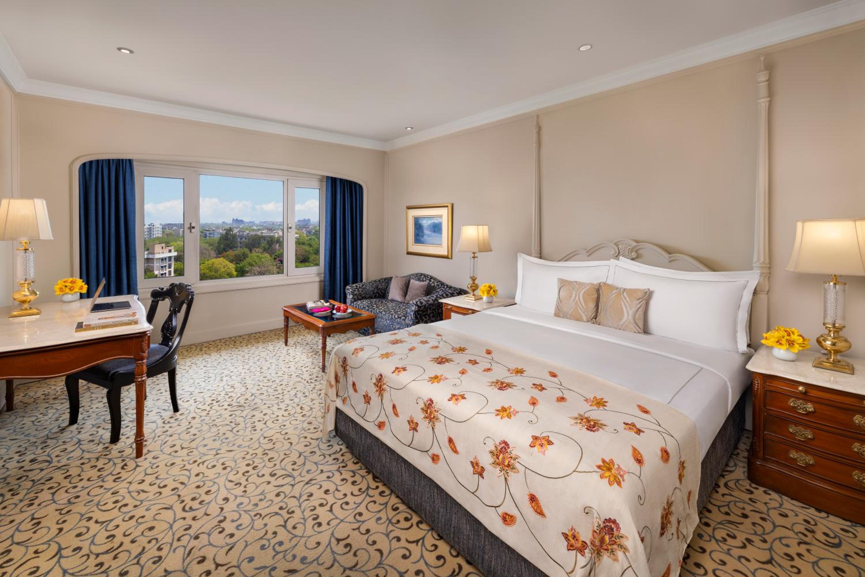 Indulge in air-conditioned rooms with minibars, electric kettles, and elegant bathrooms at Taj Palace New Delhi.