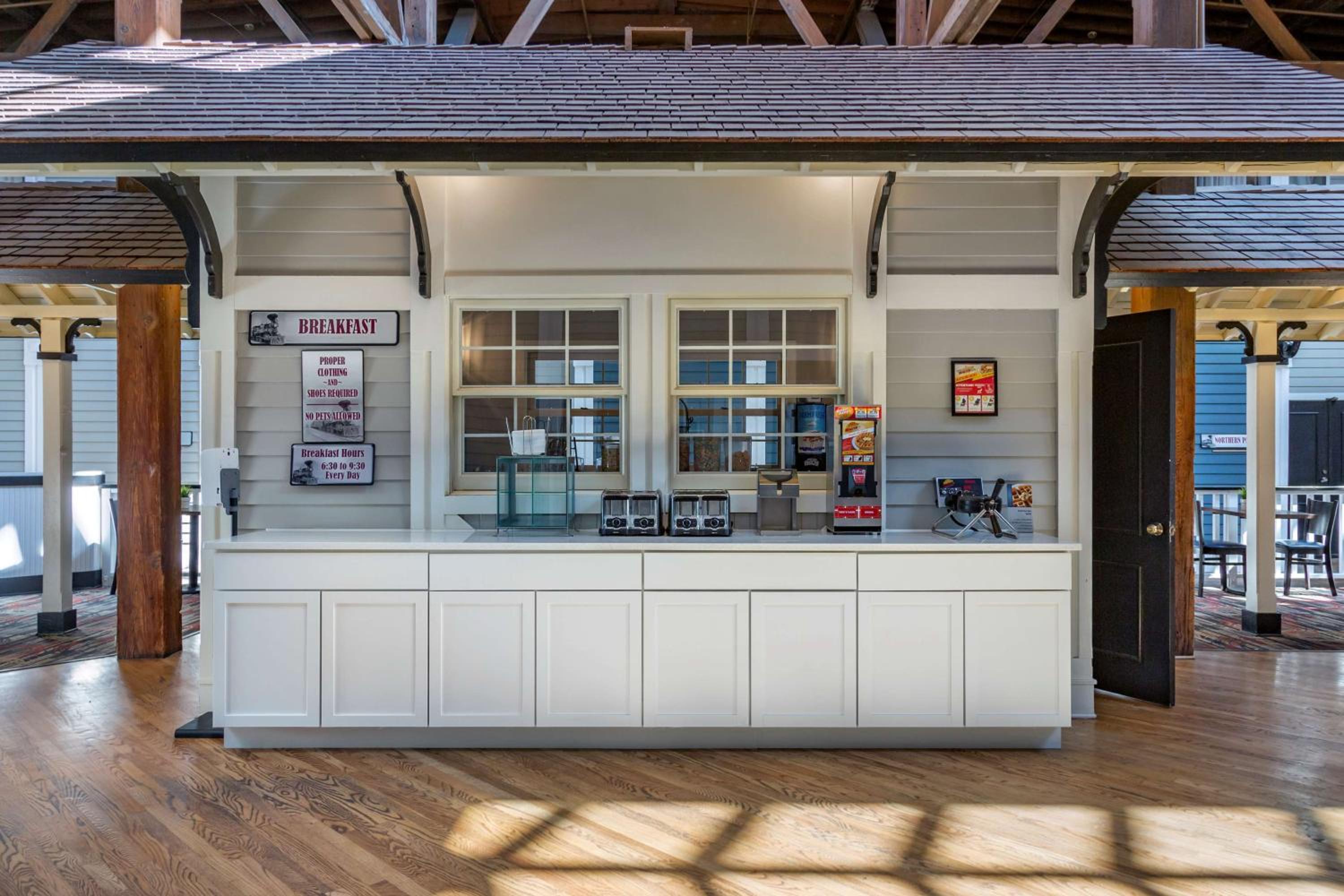 When you pull into the parking lot you think ugh this is kind of sketchy. Not the case this is such a cute hotel. I love how it used to be an old railroad depot. Rooms were great, service was awesome. Breakfast was like any other hotel breakfast. I would definitely stay here again.