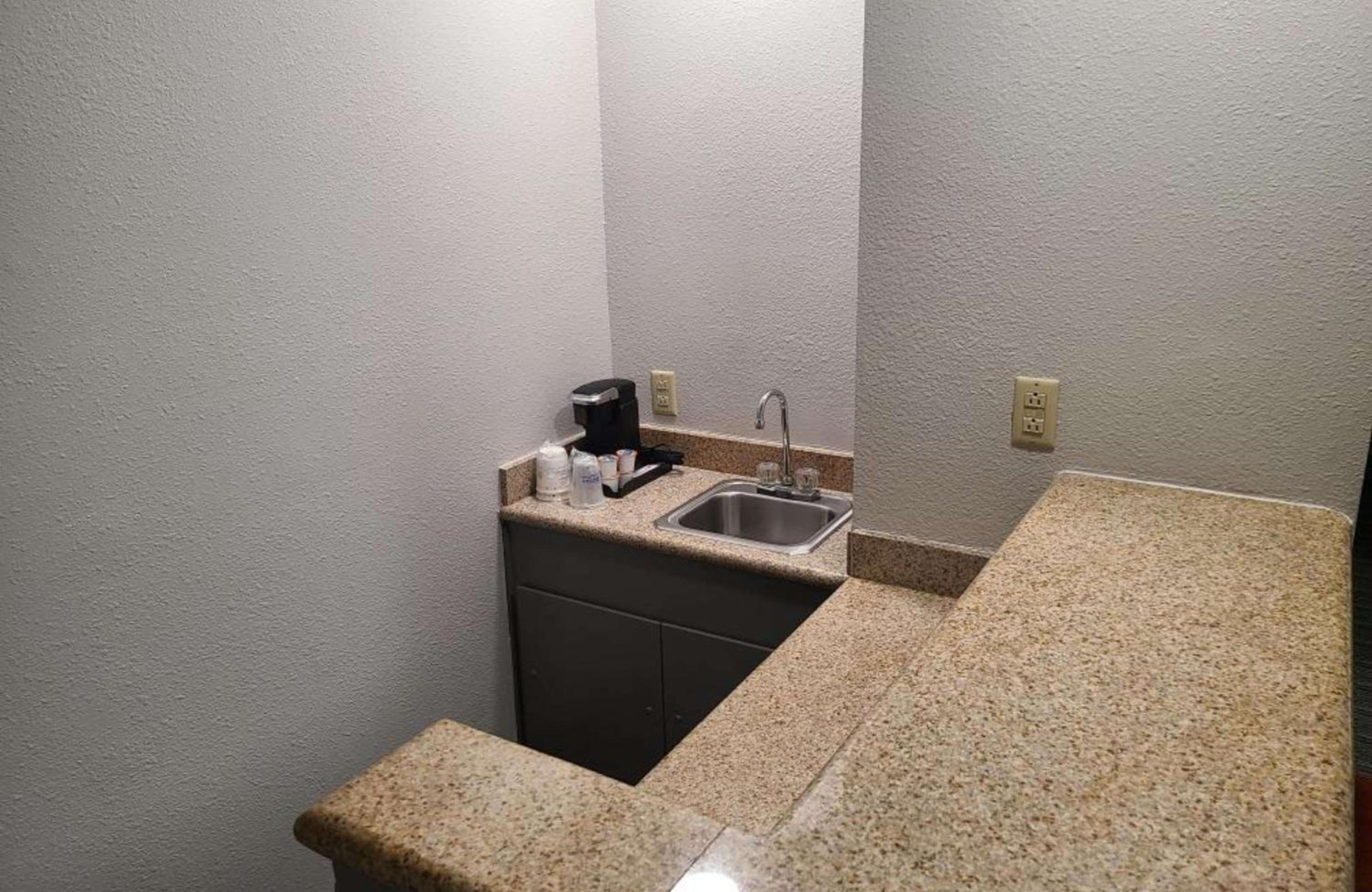 The parking situation at this hotel is horrendous. There is not enough parking to accommodate the hotel guests, we were charged $30 to park on a city street, and the “overflow parking” was 2 1/2 blocks away. The main entrance door locks at night and guests must use side doors for entry. The coffee maker is in the bathroom. We won’t be staying here again.