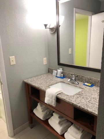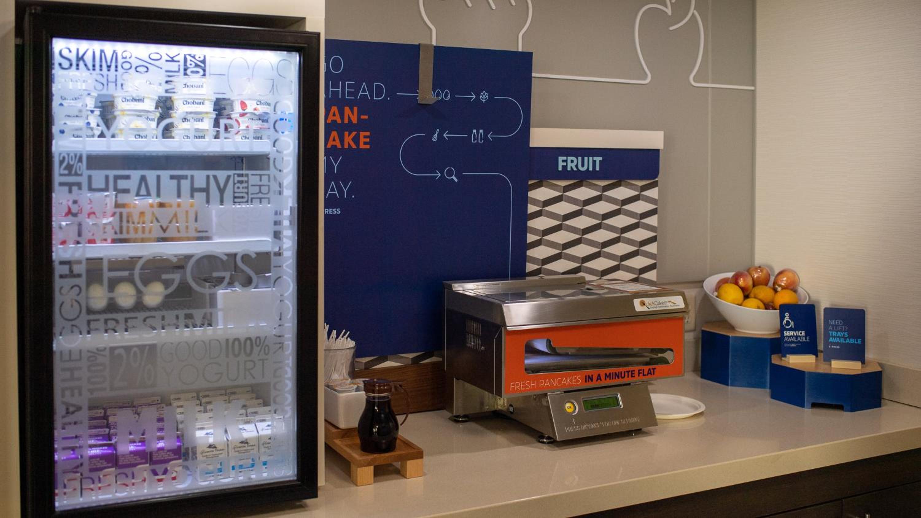 The breakfast was good; eggs, bacon or sausage, instant oatmeal, various breads and juices. The coffee machine is amazing. The best decaf coffee I ever had outside of my own home. The coffee beans are ground at the time you request a cup. The staff was friendly, respectful, and helpful to everyone I saw them interact with. Kudos to Deidra Gallashaw, Guest Service Manager, who had the side entrance cleaned as soon as I brought the need to her attention. My room was very comfortable and quiet. The bed was comfortable and the shower had plenty of hot water with good water pressure.