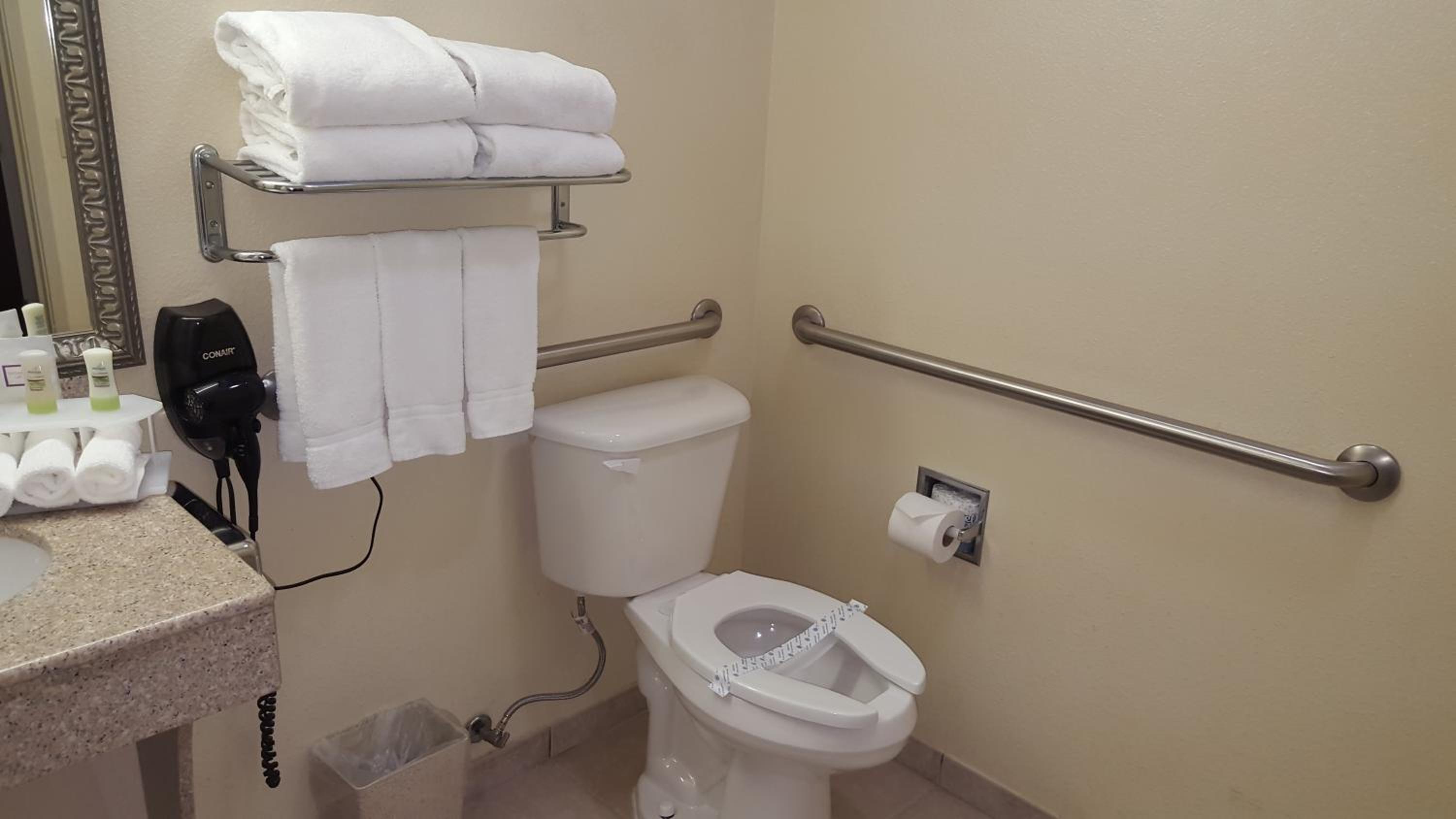 Le calme de l'hôtel et sa proximité des principaux freeways. L'amabilité du personnel, le soin apporté au petit déjeuner, la taille de la chambre, la literie très propre et adaptée.