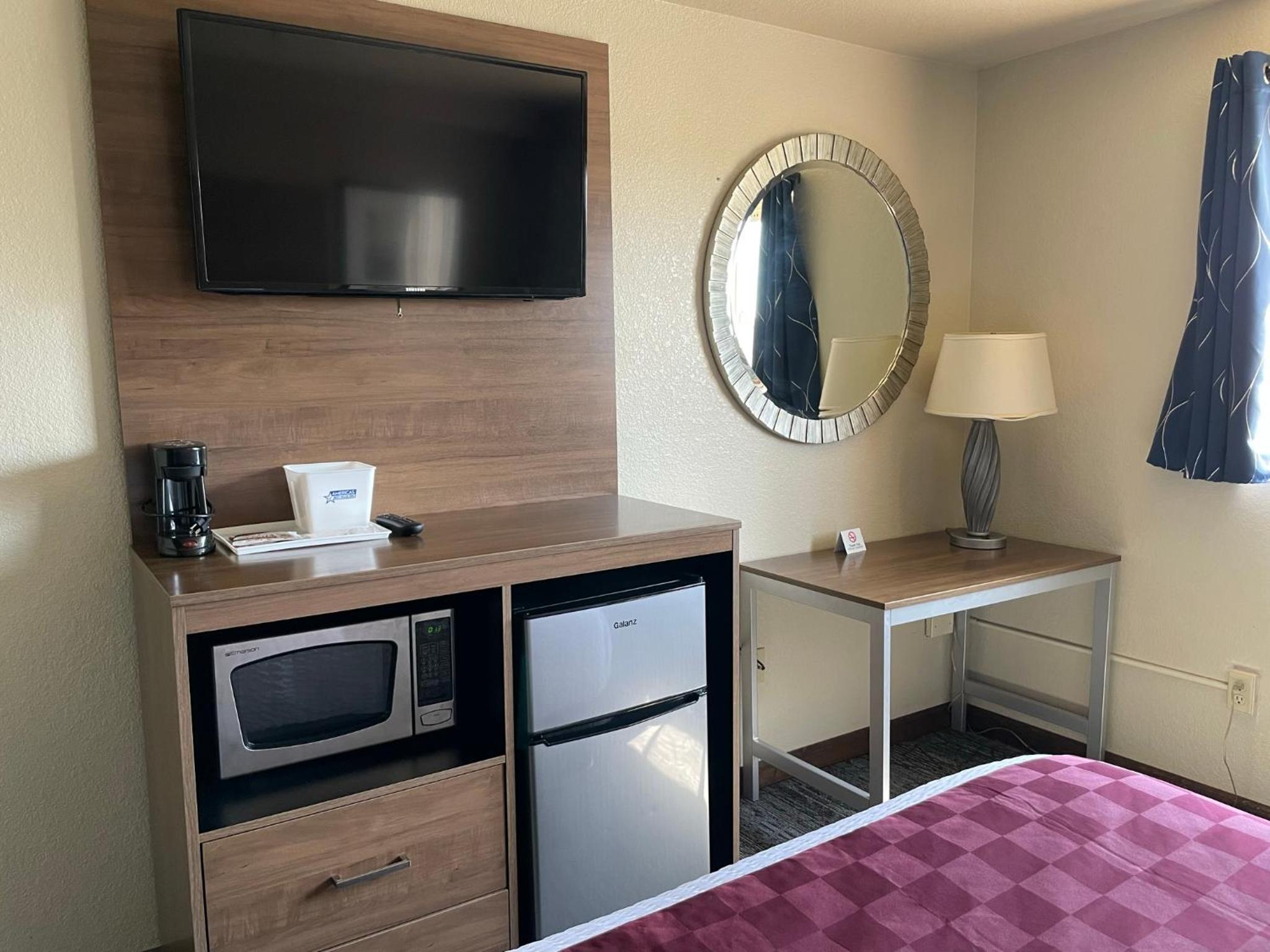 Each room is equipped with essential amenities such as air conditioning, TV with cable channels, microwave, mini-fridge, and a private bathroom with bath and shower. Guests can also enjoy a seating area and complimentary coffee in the lobby.