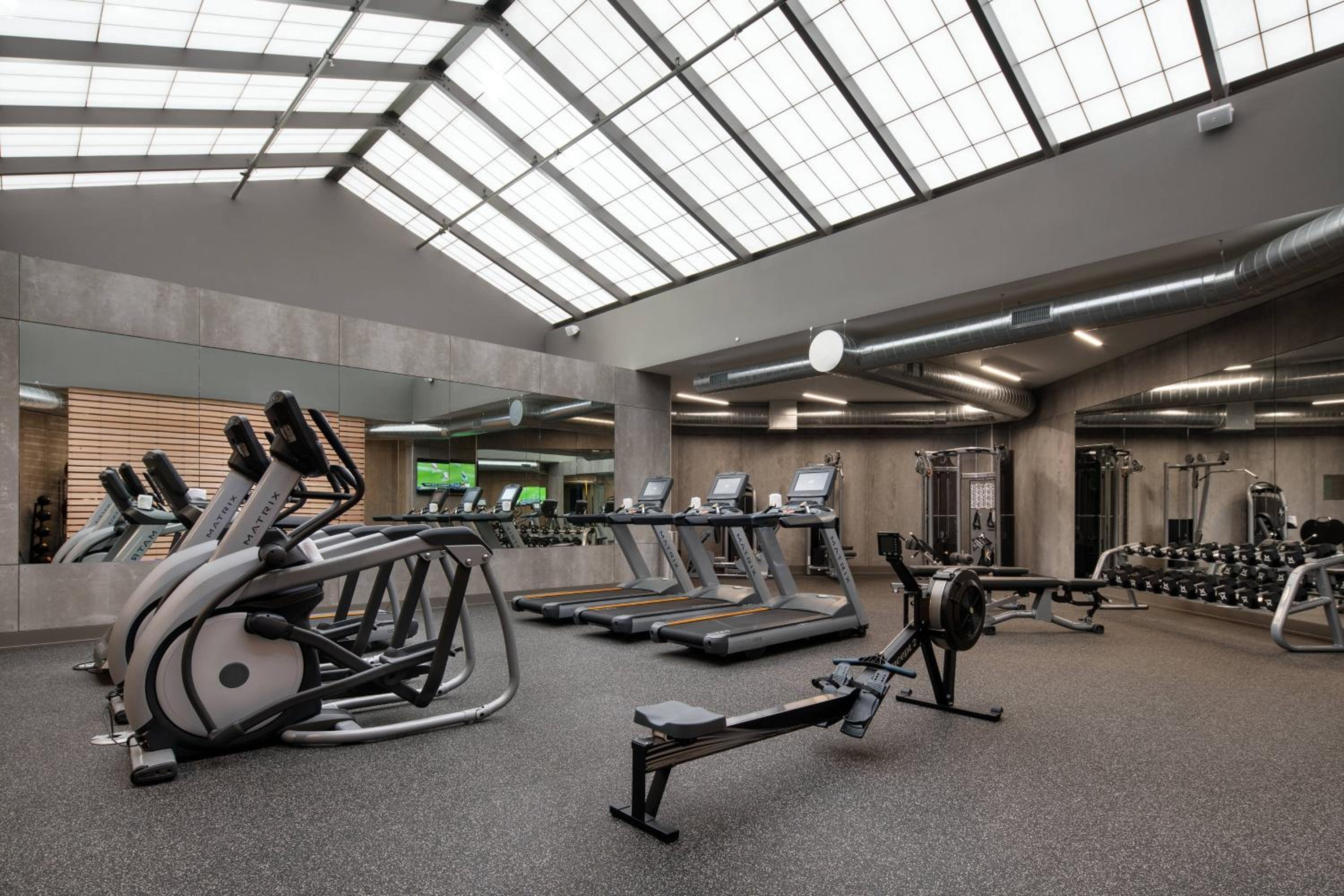The gym was nice and had enough weights and machines to complete a few full workouts and it was open 24 hours! There was always ample parking, but at a steep cost.