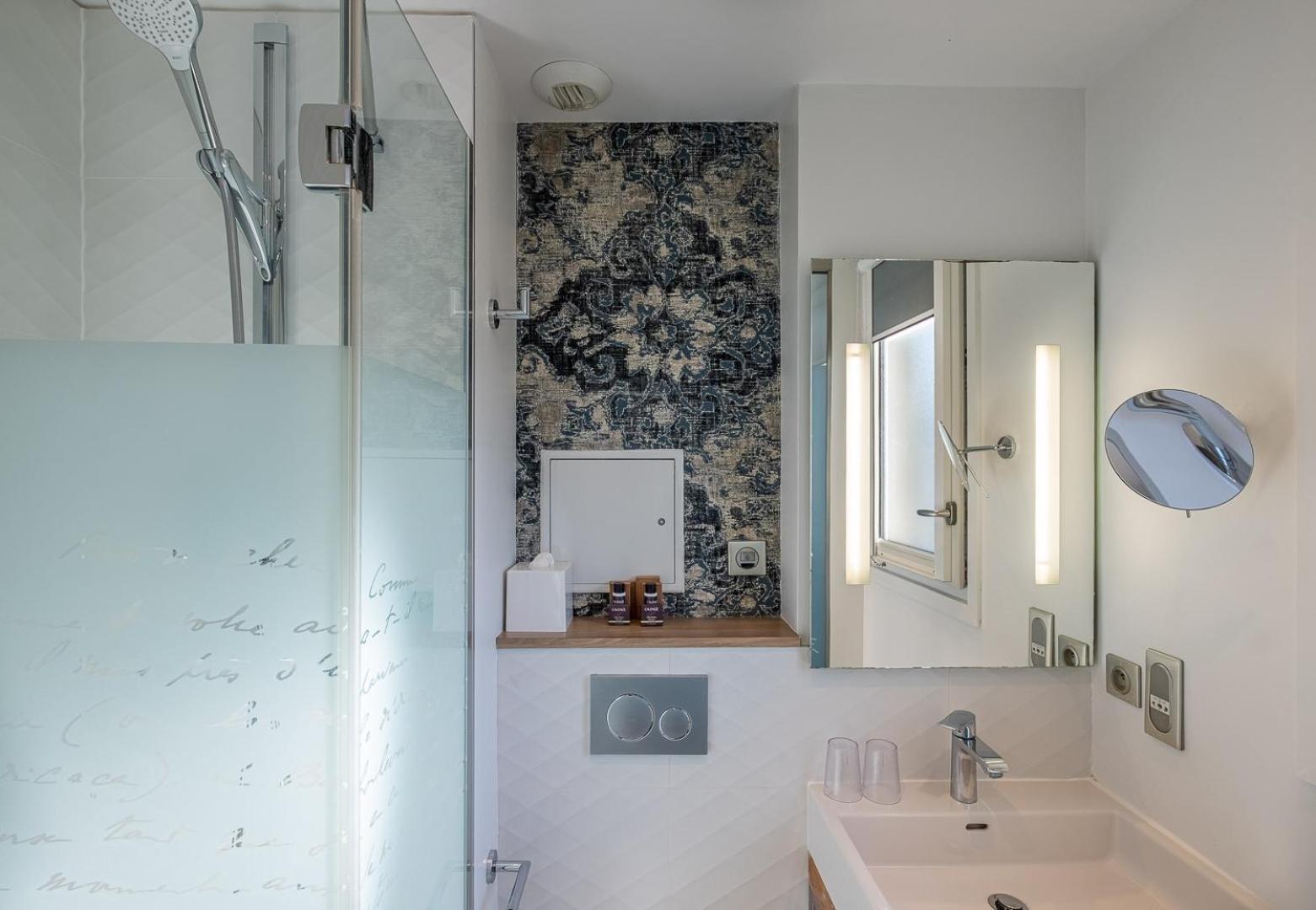 La chambre était située sous les toits, un peu sombre (6ème étage), pas le même effet que sur les photos présentées lors de la réservation. Un peu déçue malgré la qualité de la chambre.