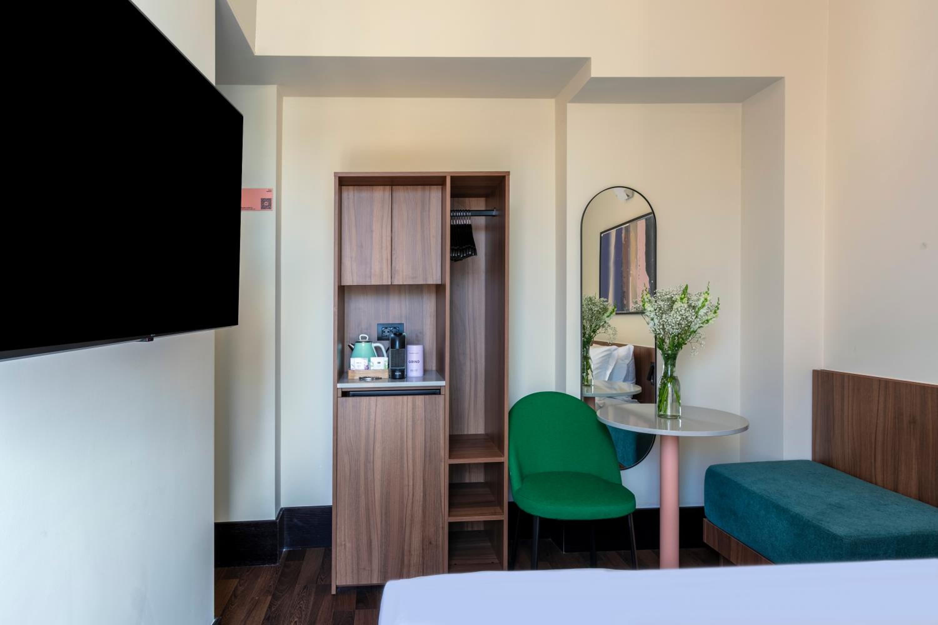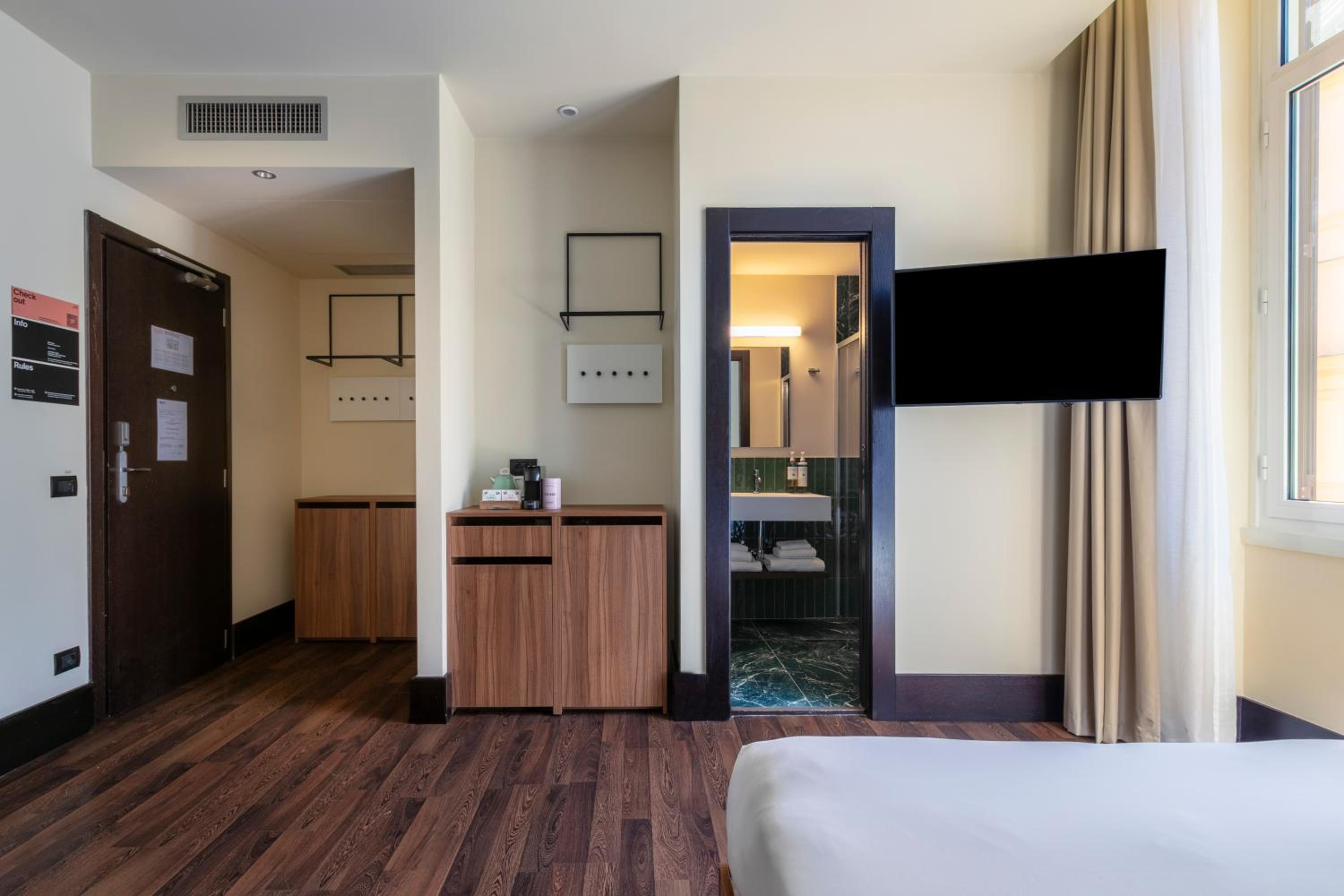 We loved the balcony, which benefited from evening sunshine. We also enjoyed being able to self-restock coffee pods and oat milk. We also liked not needing to keep track of a key and found that we could remember the code quite quickly. The host staff were always friendly, upbeat and helpful. There were some excellent breakfast and evening meal options very nearby - we would particularly recommend Il Cortile! The room was very quiet. We slept very well throughout our stay.