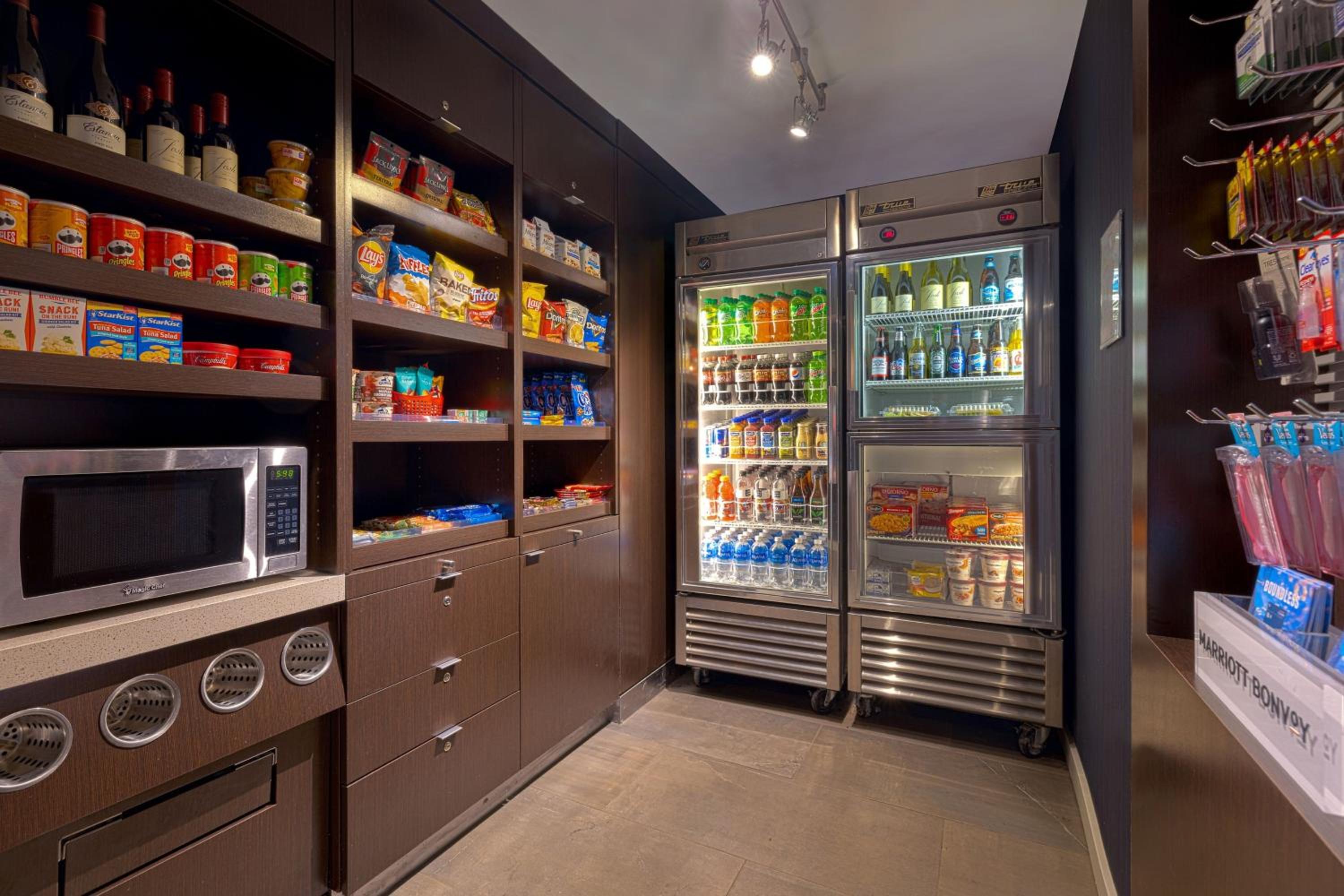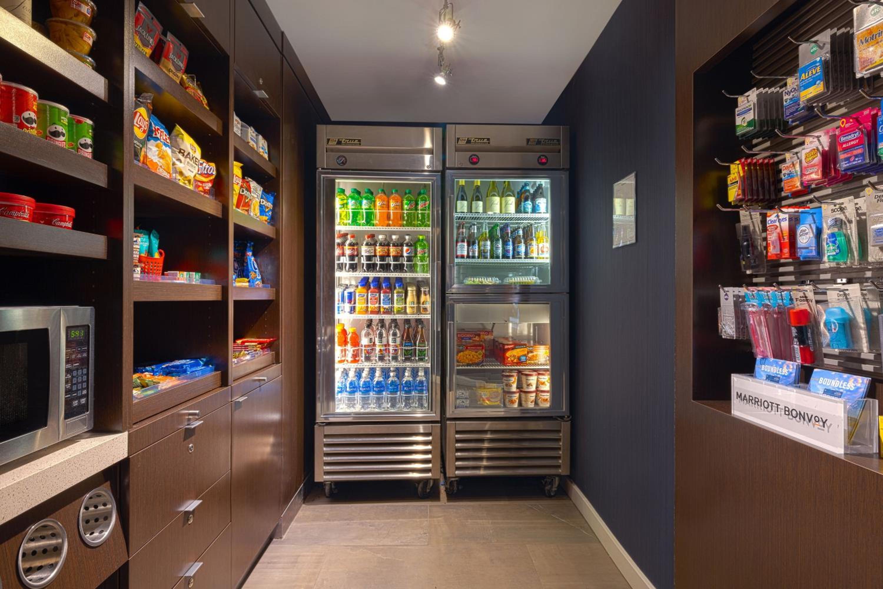 Courtyard, bar, staff, little grocery store TV lounge, location