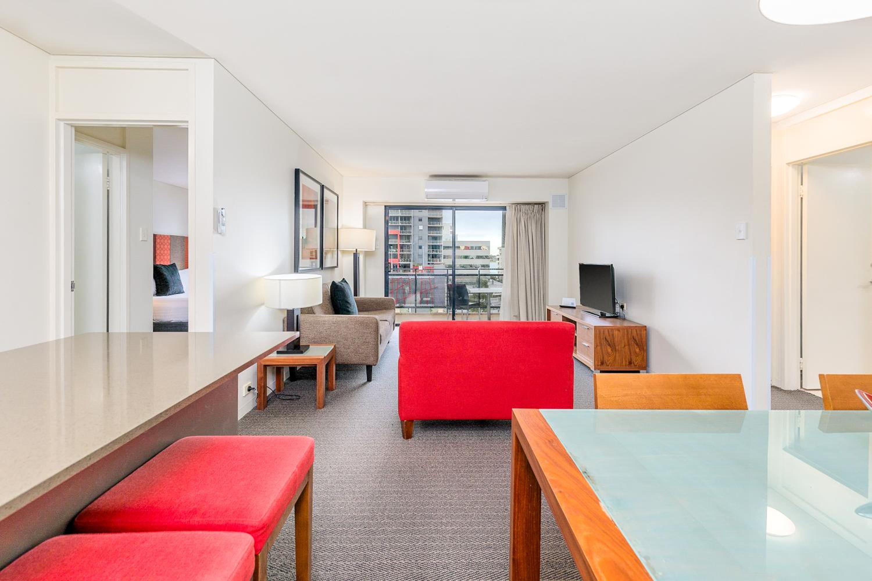 Mantra on Hay, located just 1.8 km east of Perth CBD, offers a range of spacious hotel rooms and apartments. Most rooms feature balconies, full kitchen, and laundry facilities, ensuring a comfortable stay.