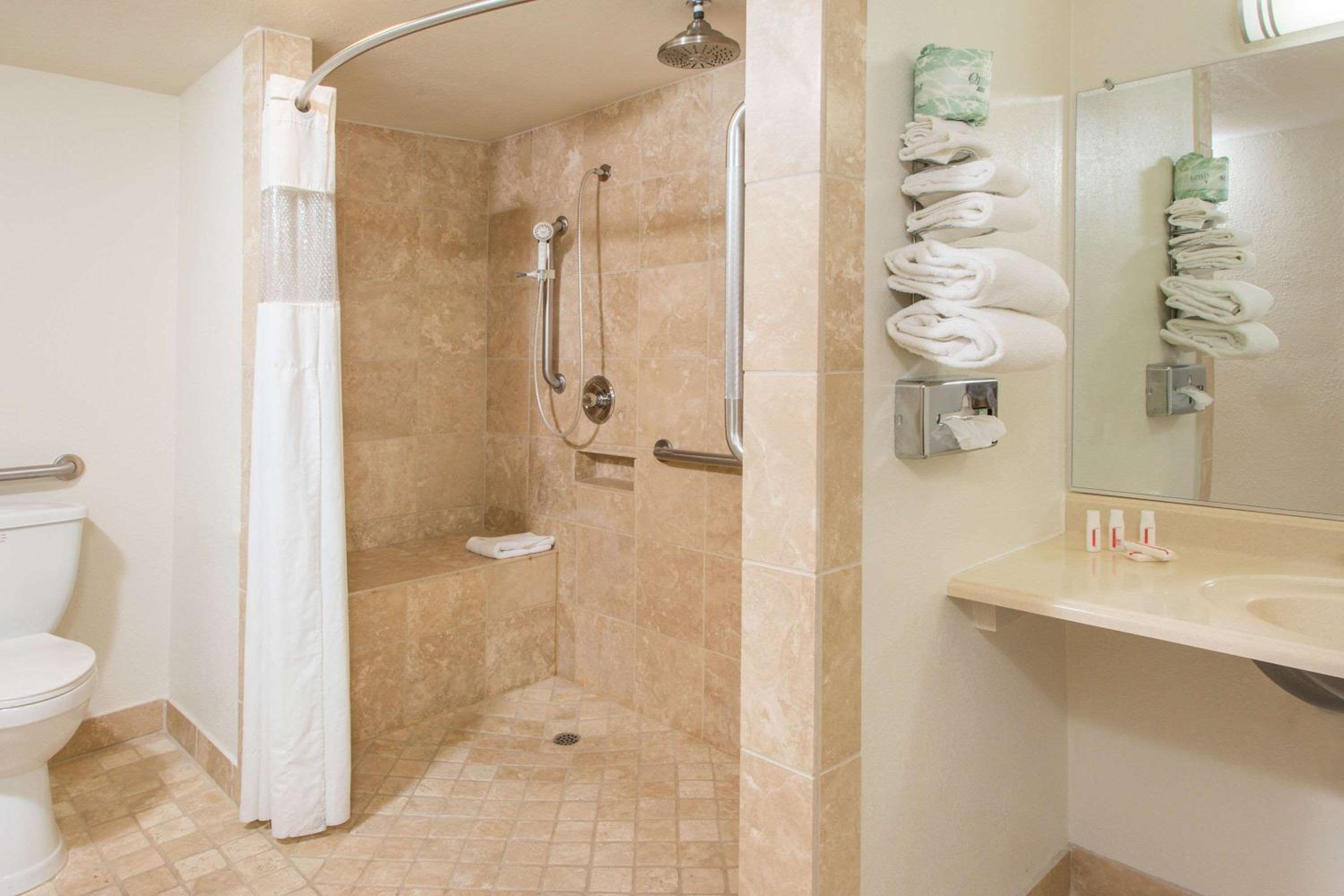 Very dissapointed. Been here before and the place has never been anything fancy, but it's really gone downhill. The bathroom was dirty, moldy, and the shower water was lukewarm. Out of order: ice machine, all vending machines, the spa. The pool was also lukewarm and not comfortable enough to enjoy on a cool day. The carpets in the common areas are all very dirty, stained, and everything else is in general disrepair. The place needs a serious makeover. Will not be coming back.
