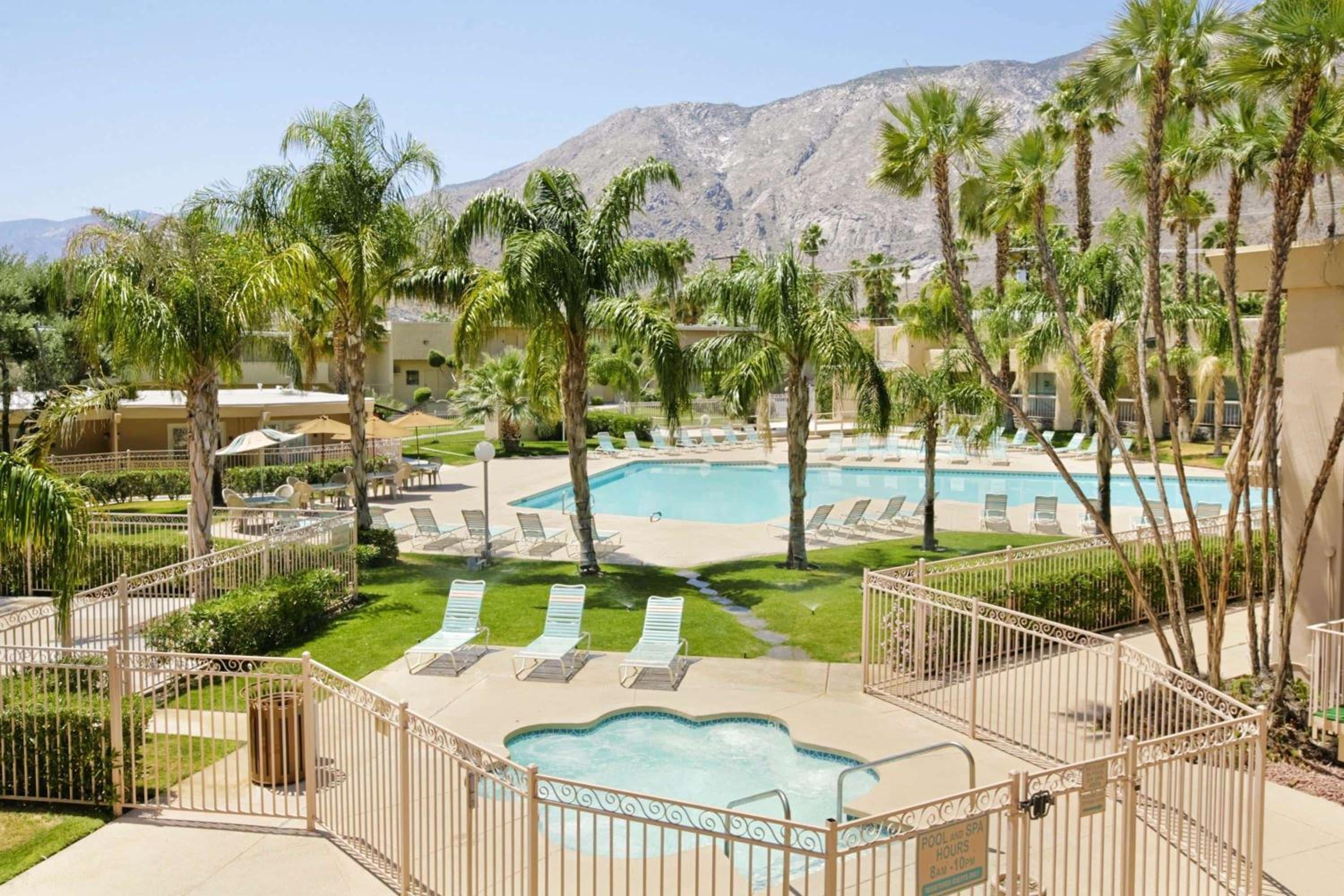 The Days Inn by Wyndham Palm Springs offers a picturesque stay near the Palm Springs Aerial Tramway. Enjoy stunning views of the San Jacinto Mountains from your private balcony or patio. Unwind by taking a dip in the outdoor pool or soaking in the hot tub while the children splash in the wading pool. Stay active at the fitness centre or explore the property's charming gardens with fountains.