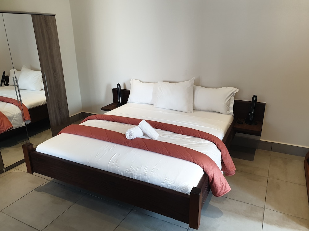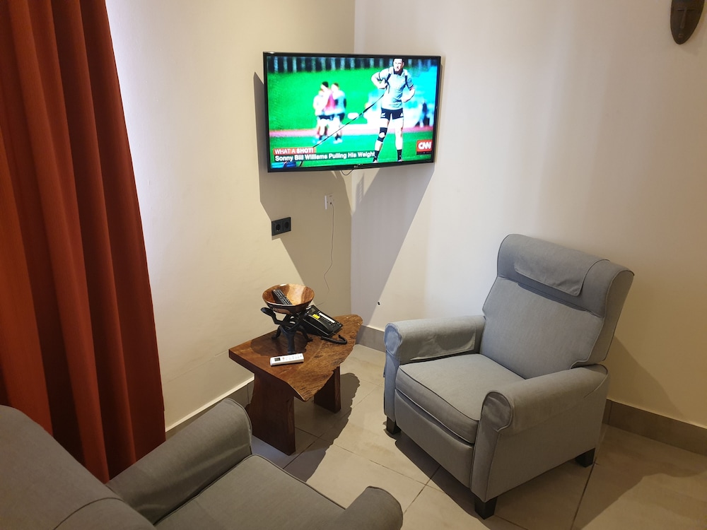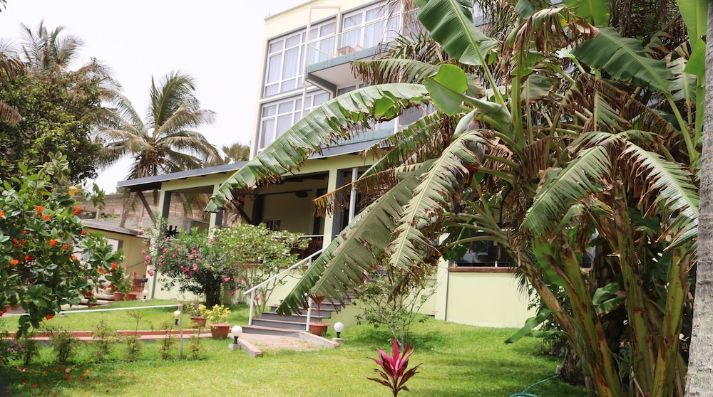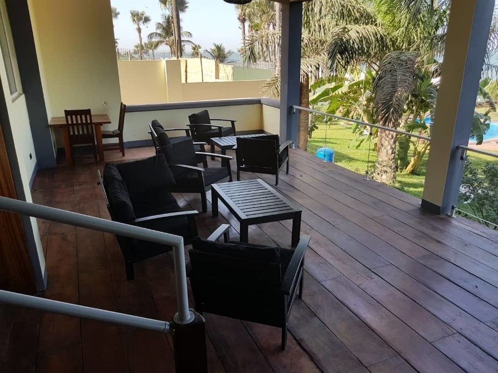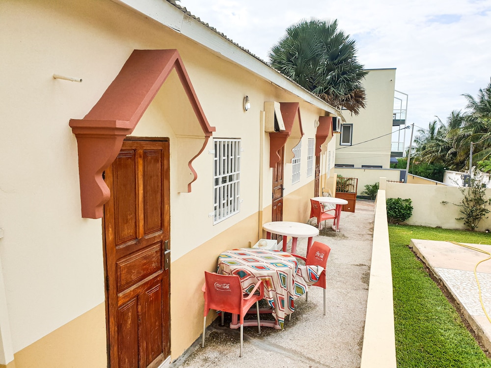 The interior decor of the hotel was very nice and the room and bathroom nicely designed but ants, spiders and cockroaches also lived there. I got food poisoning from room service with 24 hours of immediate vomiting of their benachin dish and 72 hours of diarrhea. Their breakfast was so so but their customer service left a lot to be desired. The beach at the bottom of the steps leading from the hotel had dogs pooping near the water, boys washing sheep in the ocean and cows wandering around. Very unsightly eyesore.. Yuck.