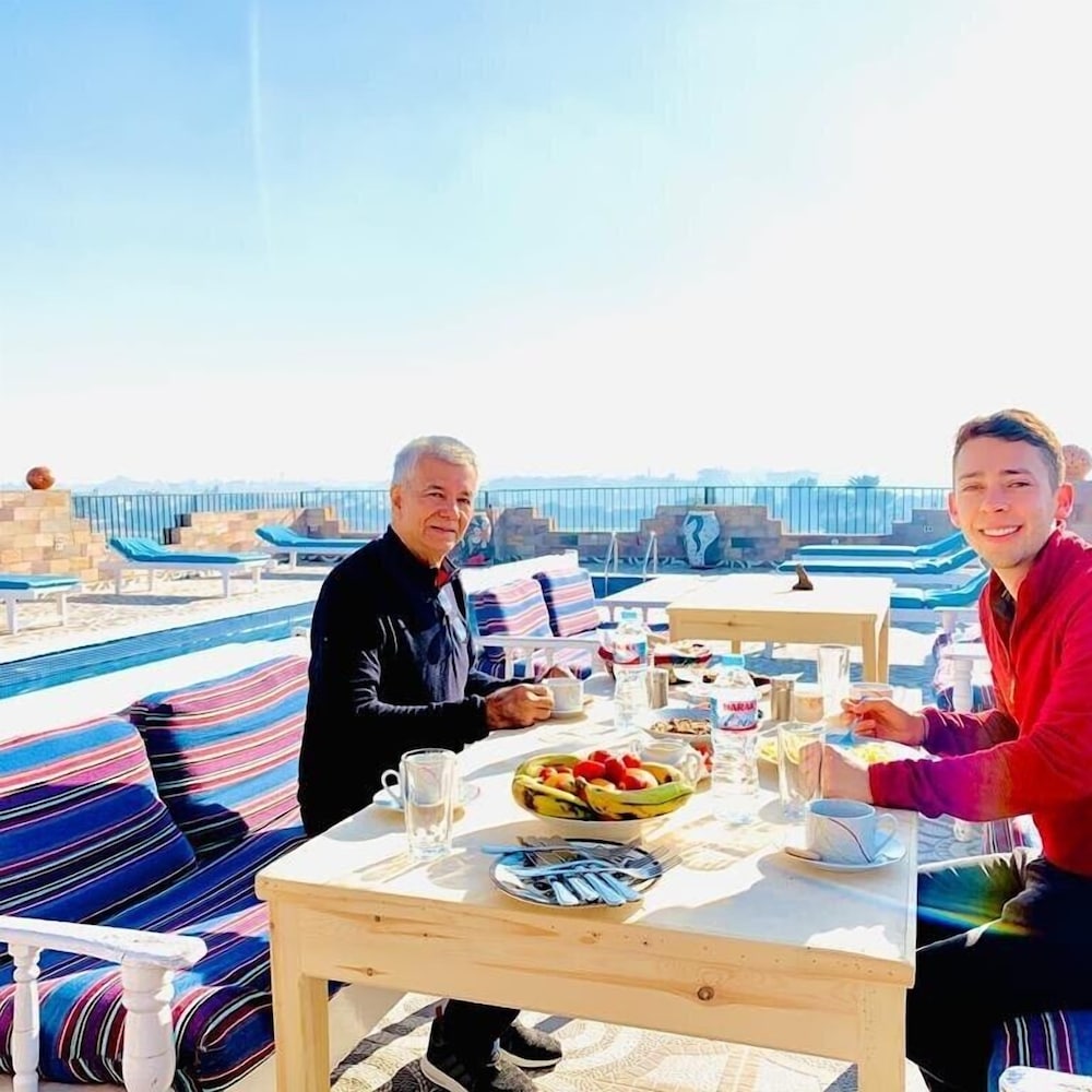 Hotel davvero carino nella west bank, lontano dal rumore e dal caos ma a due passi da ristoranti e dal Nilo. Una vista mozzafiato sul rooftop, aperto tutto il giorno, dal quale abbiamo gustato una deliziosa cena al nostro arrivo. La colazione, inclusa, era abbondante e molto buona. Lo staff è stato davvero caloroso e generoso ed ha assecondato ogni nostra esigenza. Consiglio davvero a tutti quelli che vogliono vivere una Luxor più autentica lontano dalle trappole per turisti.