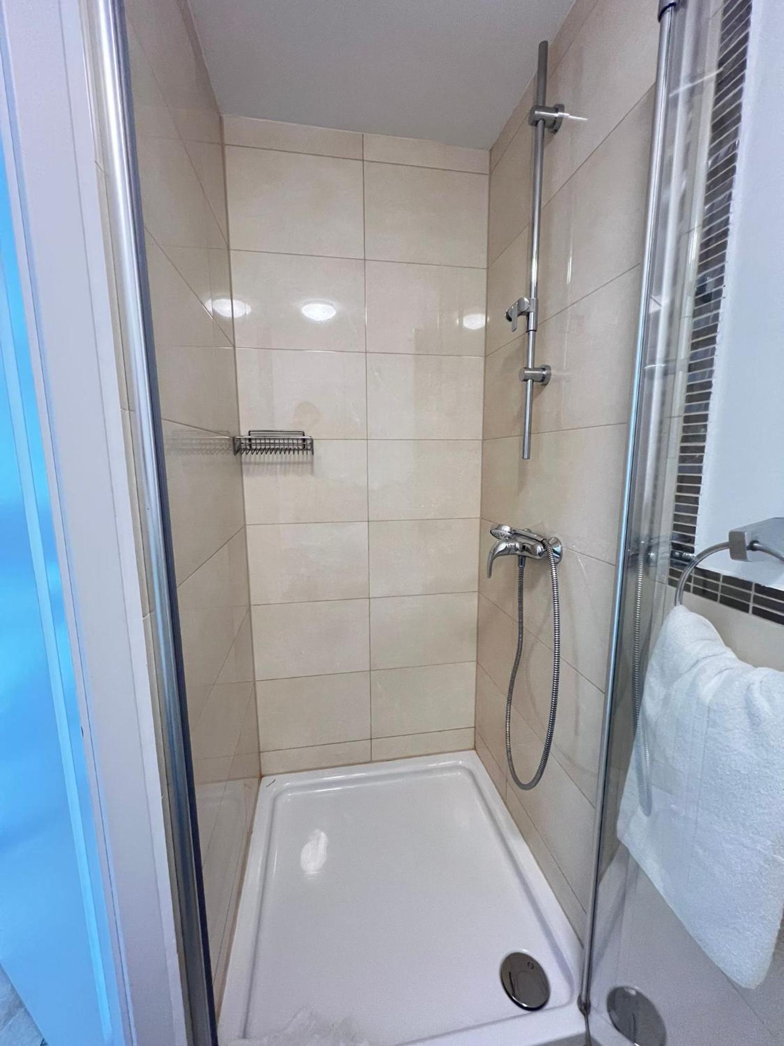 Dat er een restaurant was. Een Grieks. Steakhouse was er niet meer. En de douche was heerlijk krachtig