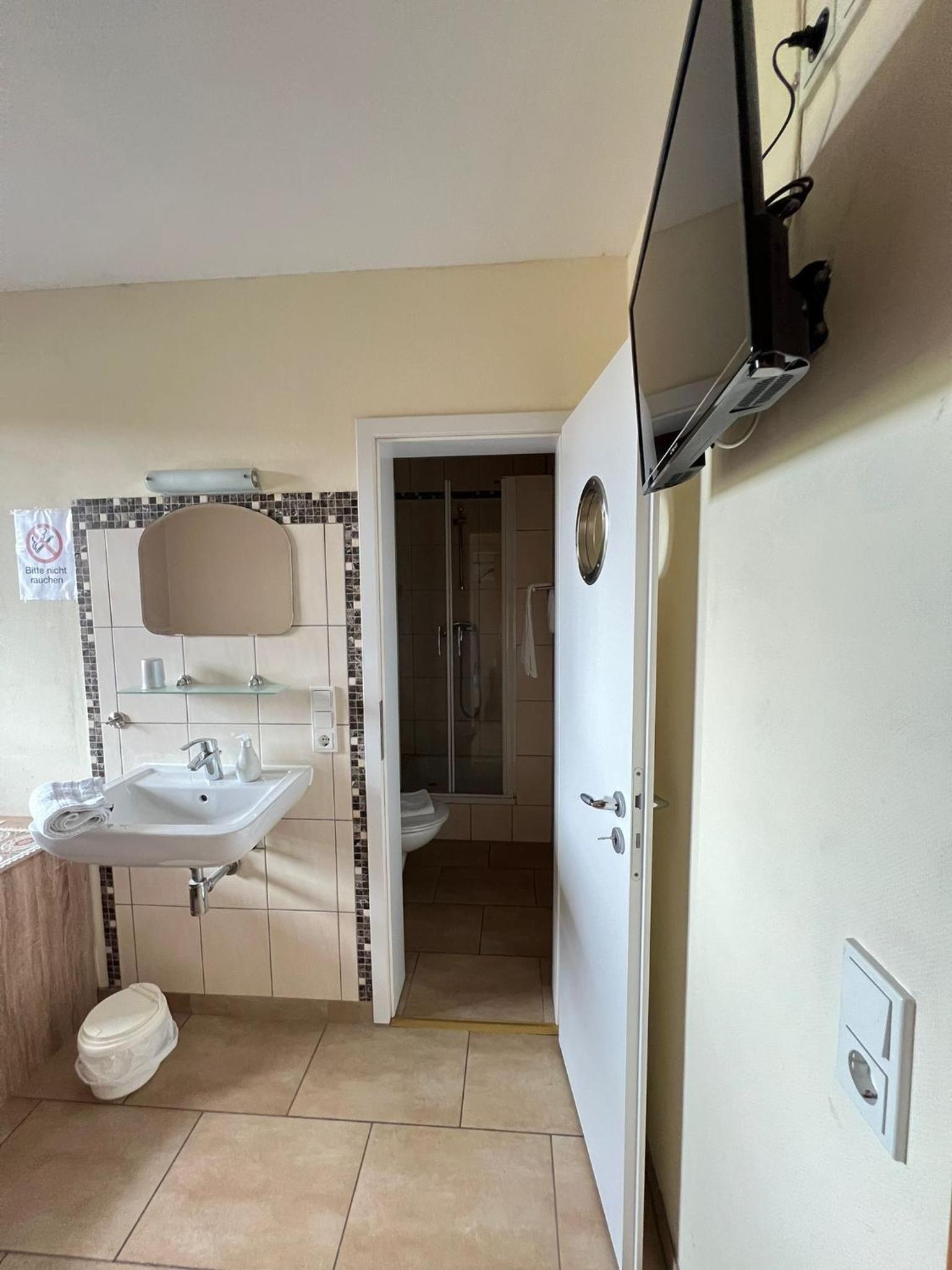 Das Zimmer, Bad und Bett war sauber und ordentlich. Die Ausstattung war in Ordnung.Der Preis war wirklich sehr günstig. Parken am Haus war problemlos. Obwohl im Erdgeschoss das Restaurant ist war es ruhig in den oberen Etagen.