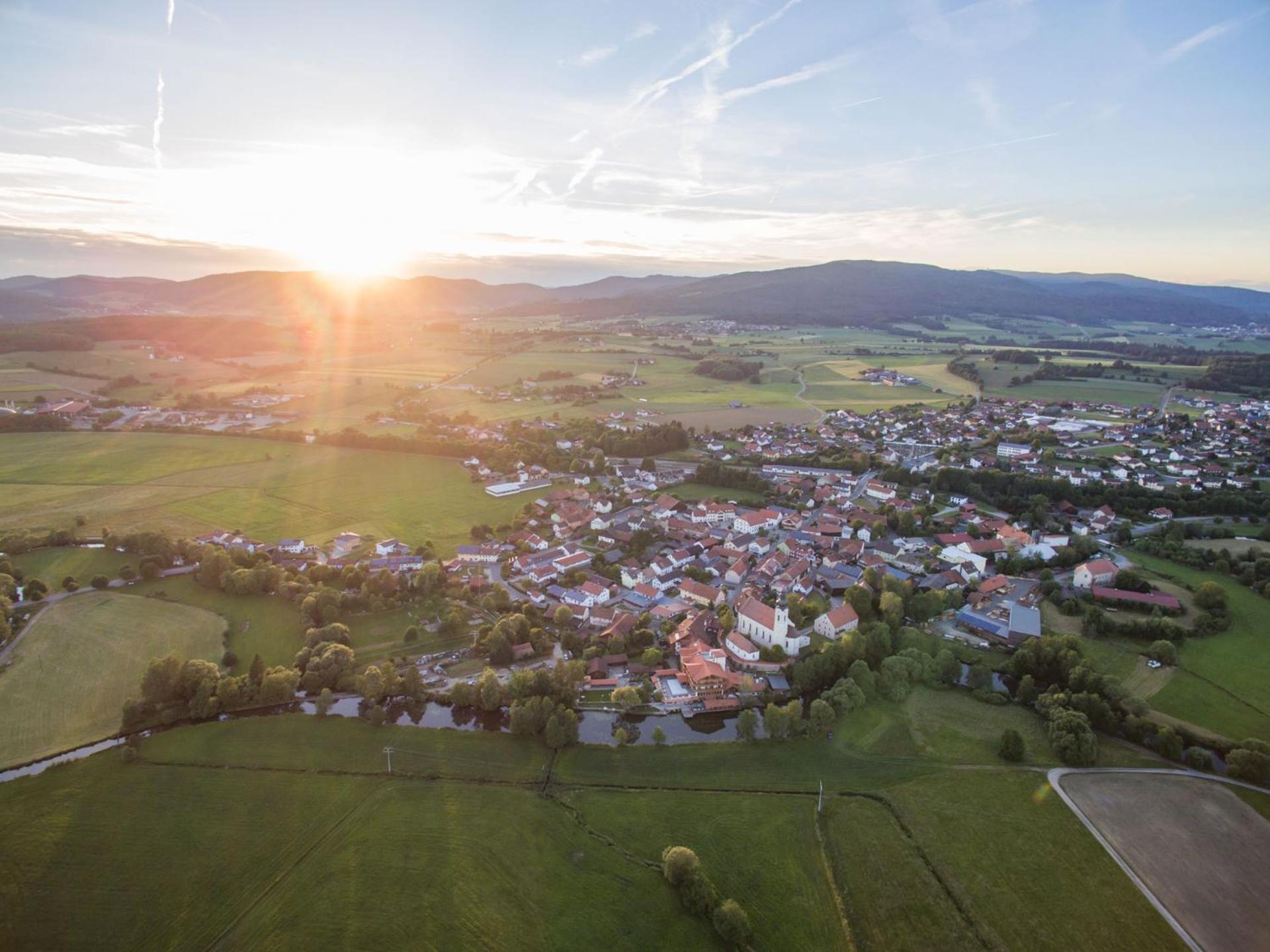 Das Hotel liegt schön am Rand von Arnbruck am Ufer eines idyllischen Baches. Allerdings ist das Hotel sehr verwinkelt und in die Ortschaft verbaut. Man hat dadurch keinen wirklich ungetrübten Fernblick - irgendwo ist immer ein Dach oder ein Gebäude im Weg.