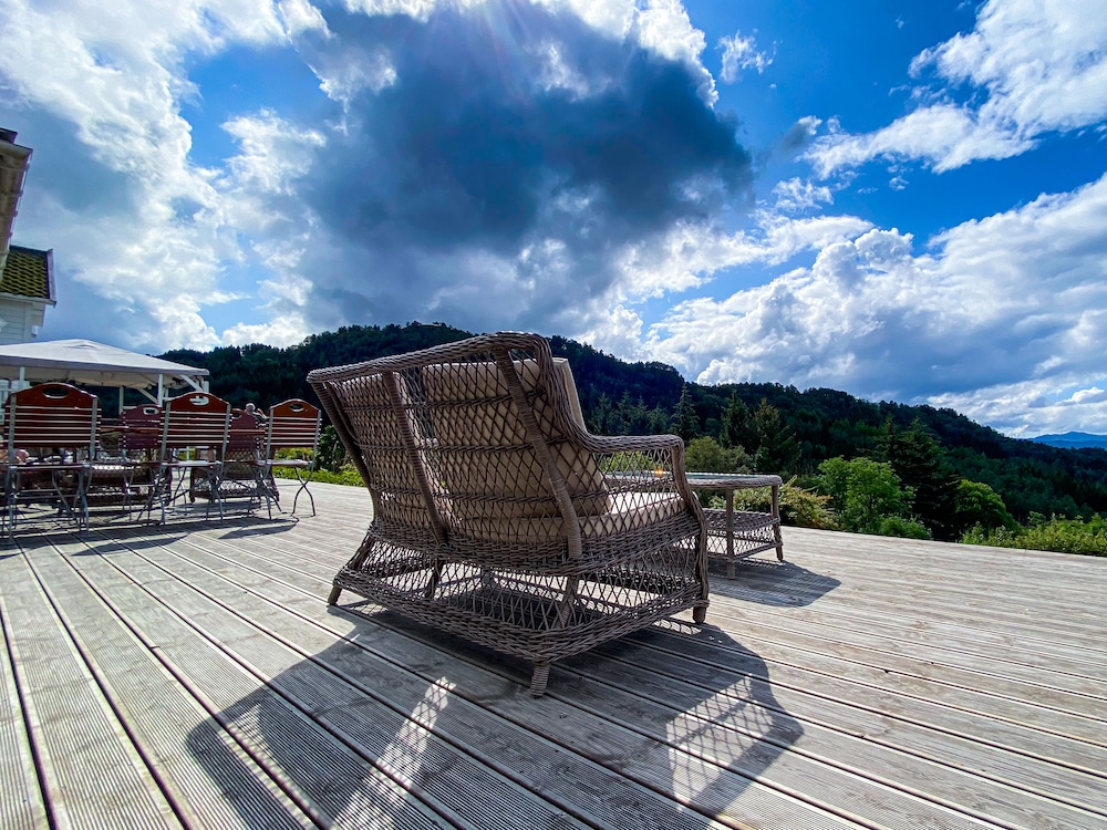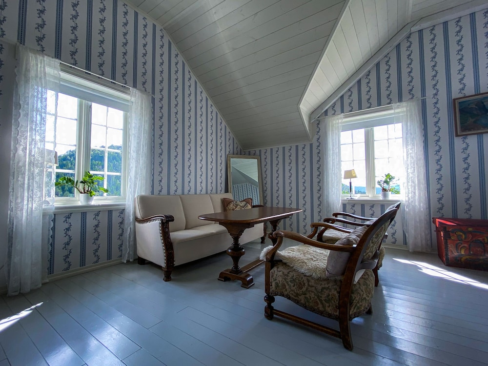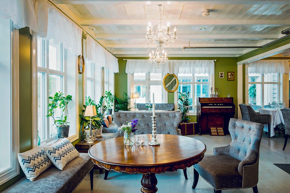 Kjempefin og roleg beliggenhet. Fin og heimekoseleg atmosfære. 3 retters middag om kvelden var bate fantastisk! Kjekt med omvisning på hotellet som vart avslutta med eit flott musikalsk innslag av "husfar'. Delikat frokost som vart servert på tallerken ved bordet pga koronatiltak. Sakna varmtett til frokosten. Totalt sett var overnattinga overprisa.